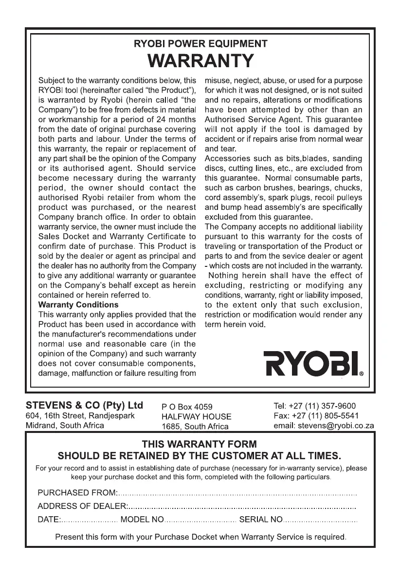 Ryobi BS-230 - Warranty Information; Warranty Conditions; Warranty Service