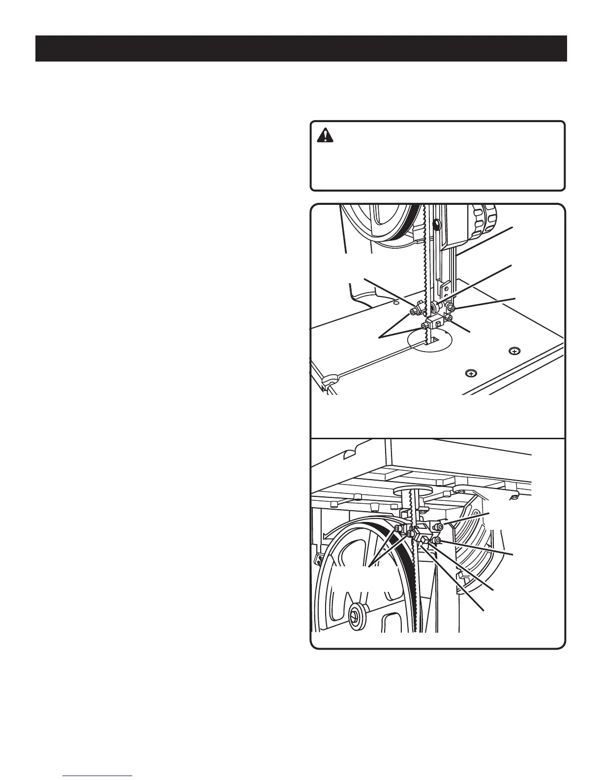 securely. Repeat this procedure for the lower blade guide