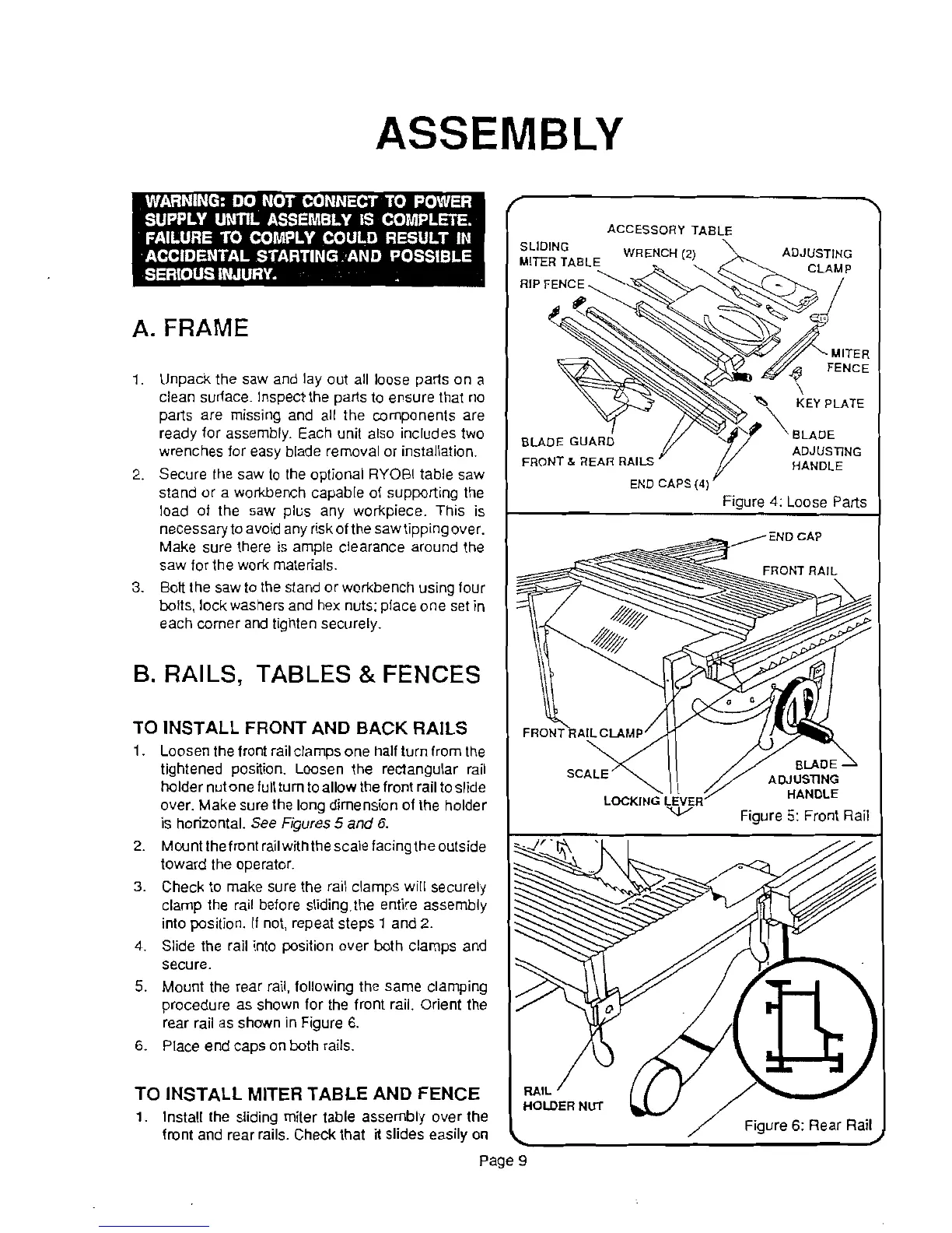 Ryobi BT-3000 - Assembly; Frame Assembly; Rails, Tables & Fences Installation