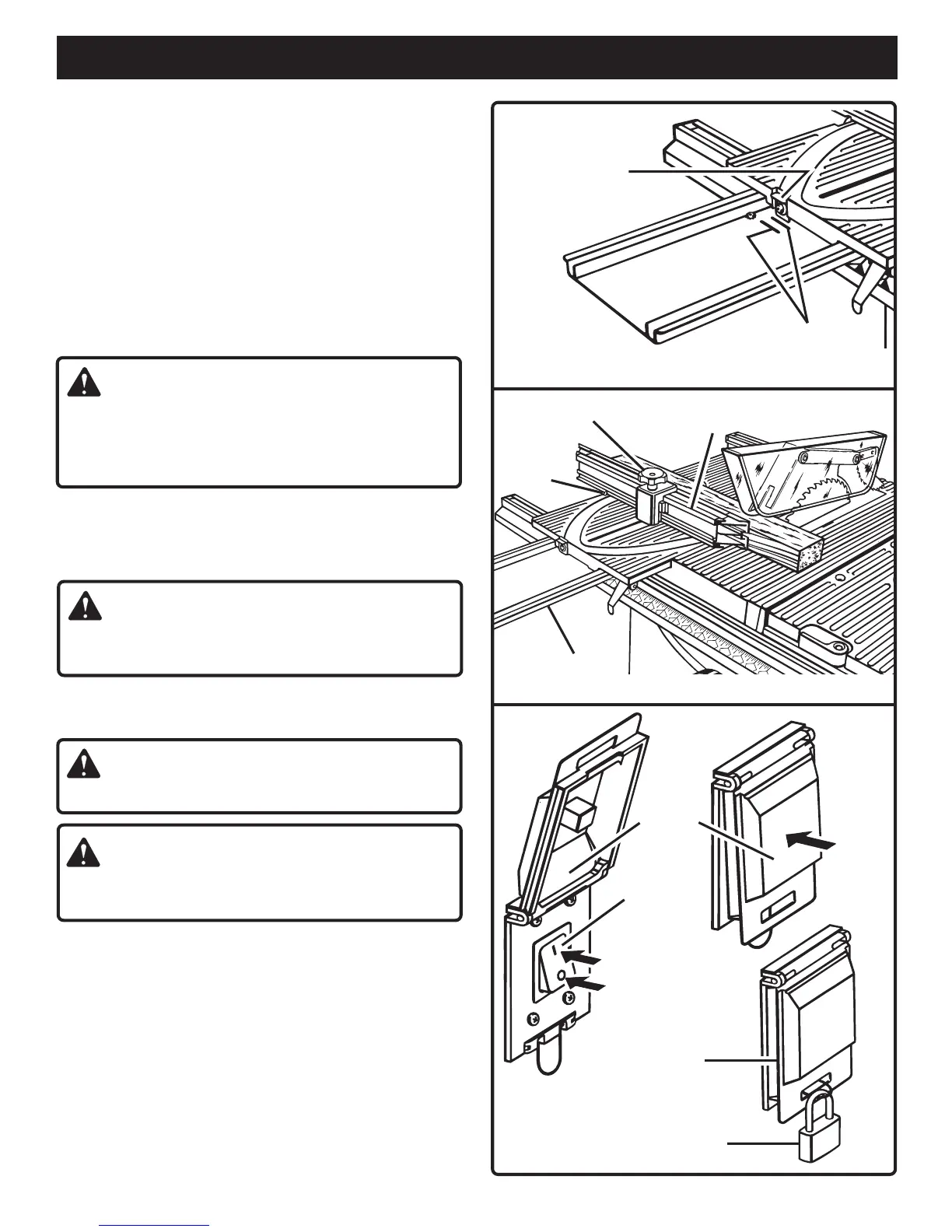 of the saw table. The sliding miter table should be locked for