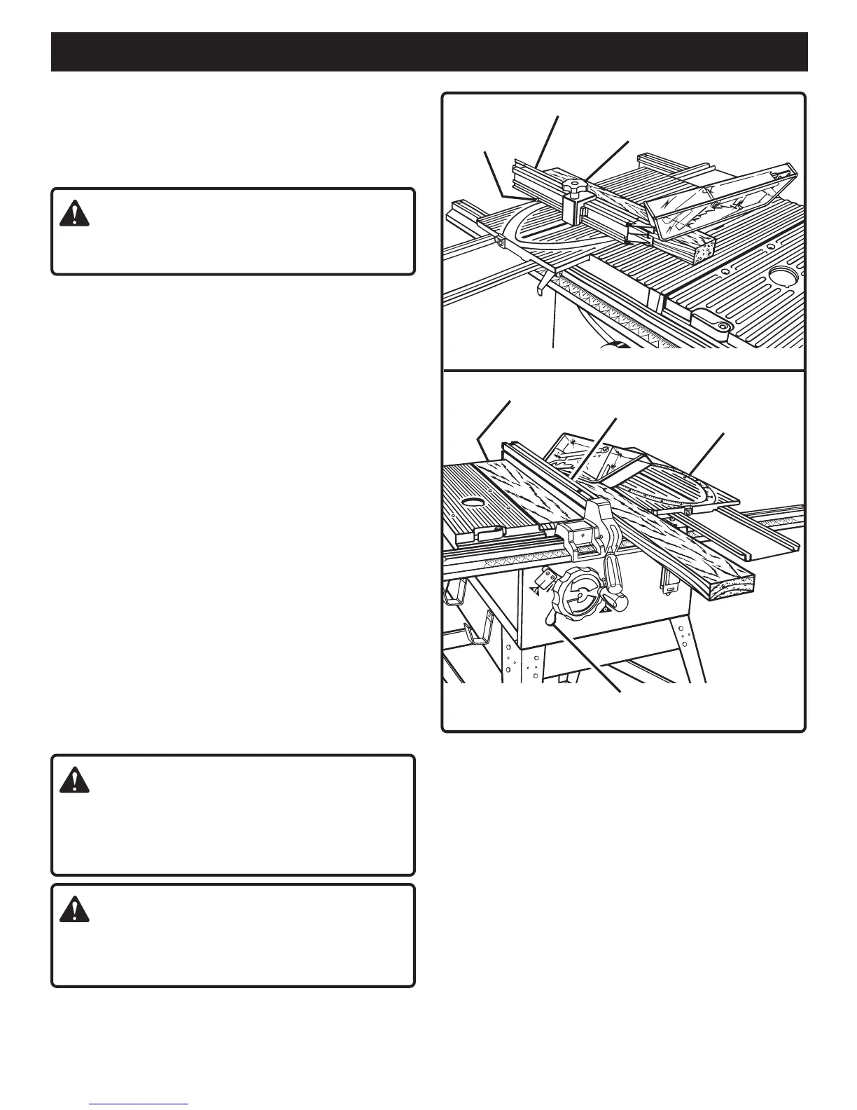 trapping the wood and causing kickback. Placement of