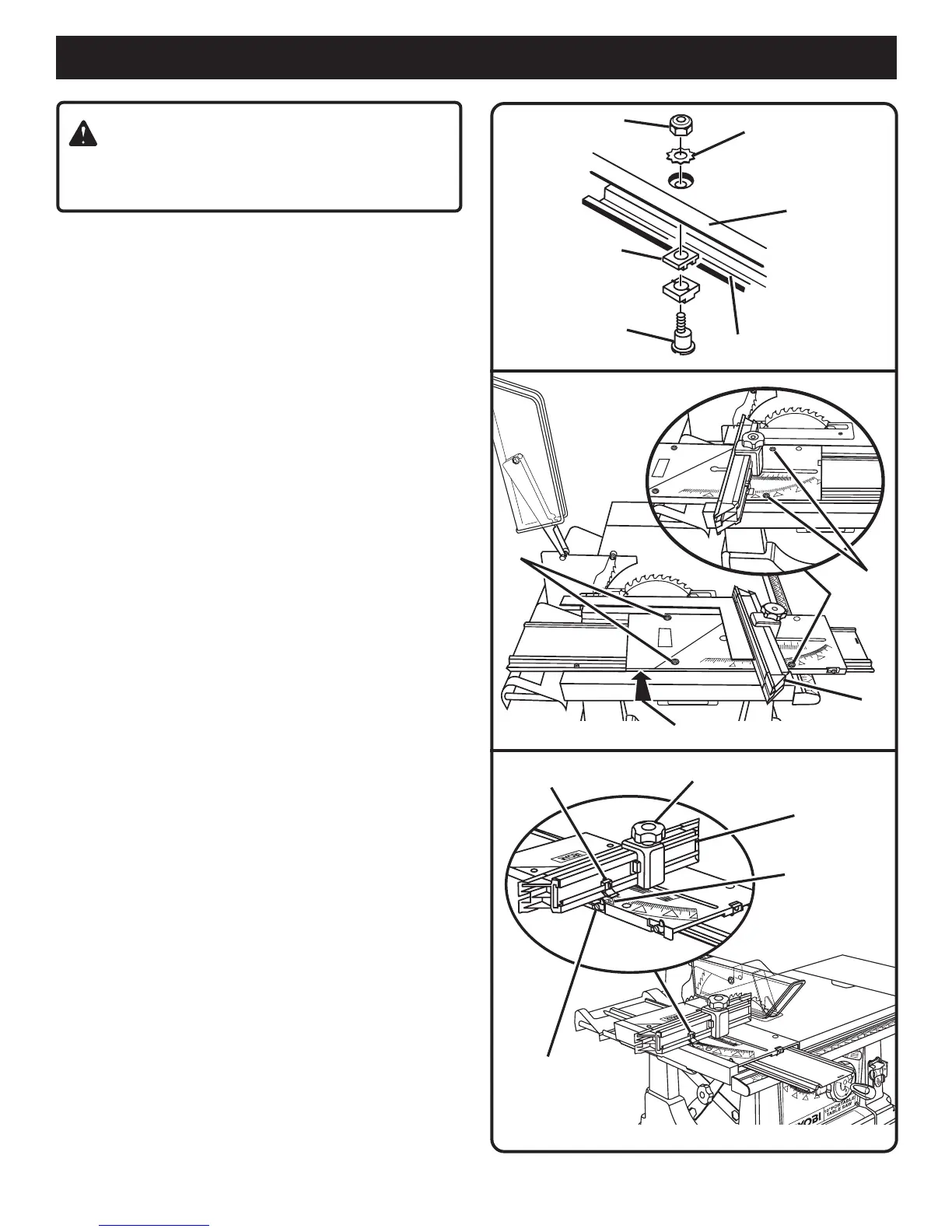 Adjust left rear screw from underneath miter table until