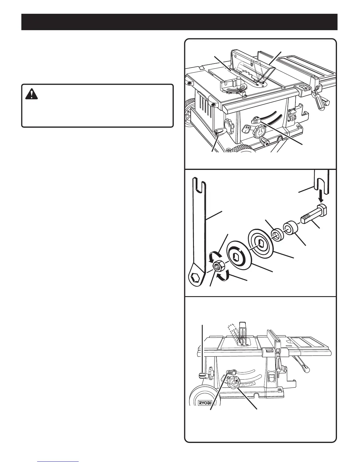 Note: The arbor nut has right-hand threads.