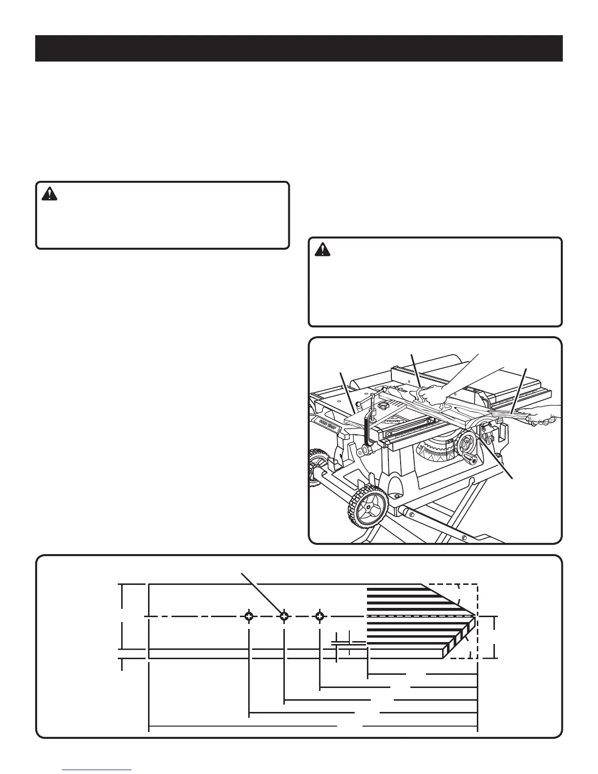 ing the blade in the saw kerf. Failure to heed this warning