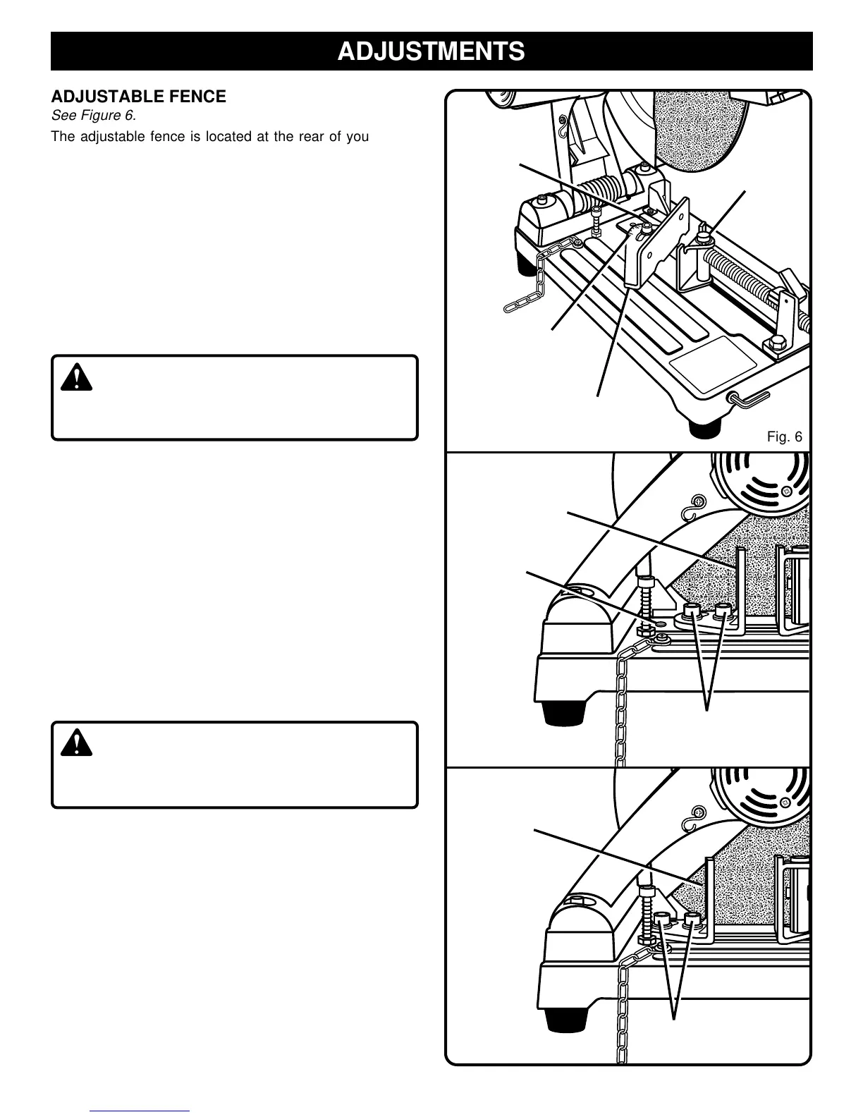The adjustable fence is located at the rear of your cut-off