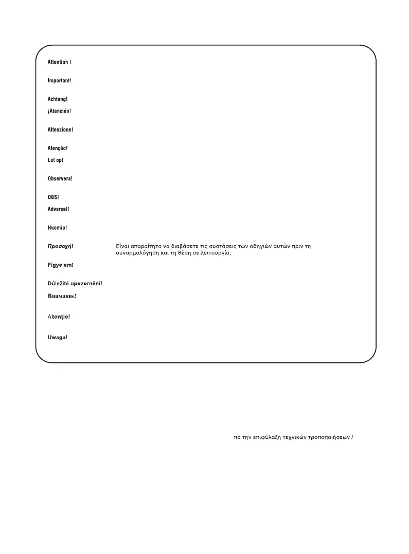 Bajo reserva de modificaciones técnicas / Con riserva di eventuali modifiche tecniche / Com reserva de modificações técnicas /