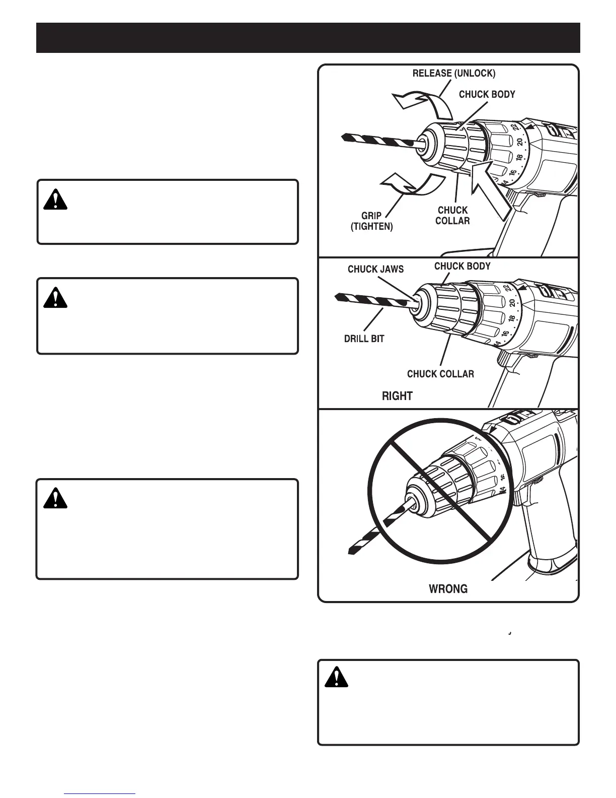 ■ Insert your drill bit into the chuck the full length of the