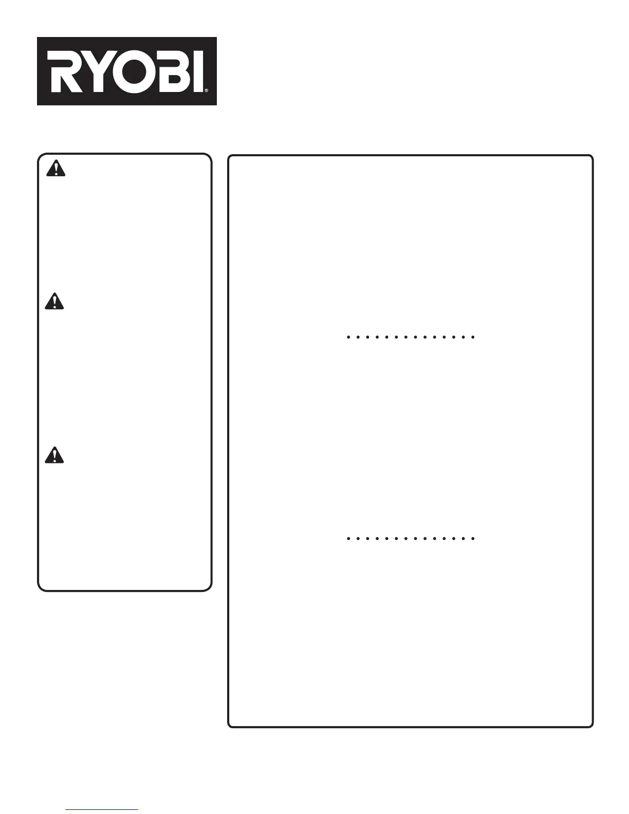Replacement parts can be purchased online at www.ryobitools.com or by calling