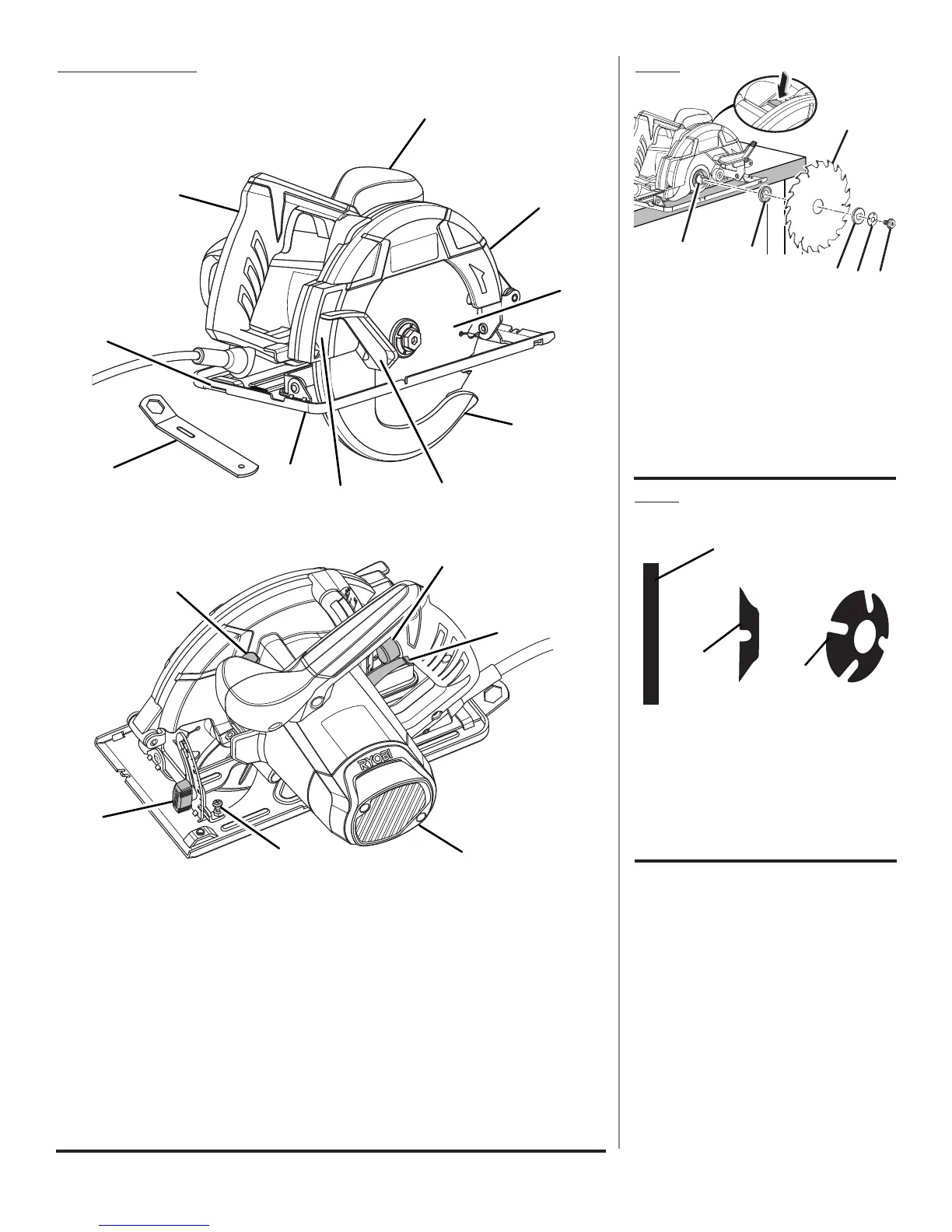 F - Lower blade guard handle (poignée de