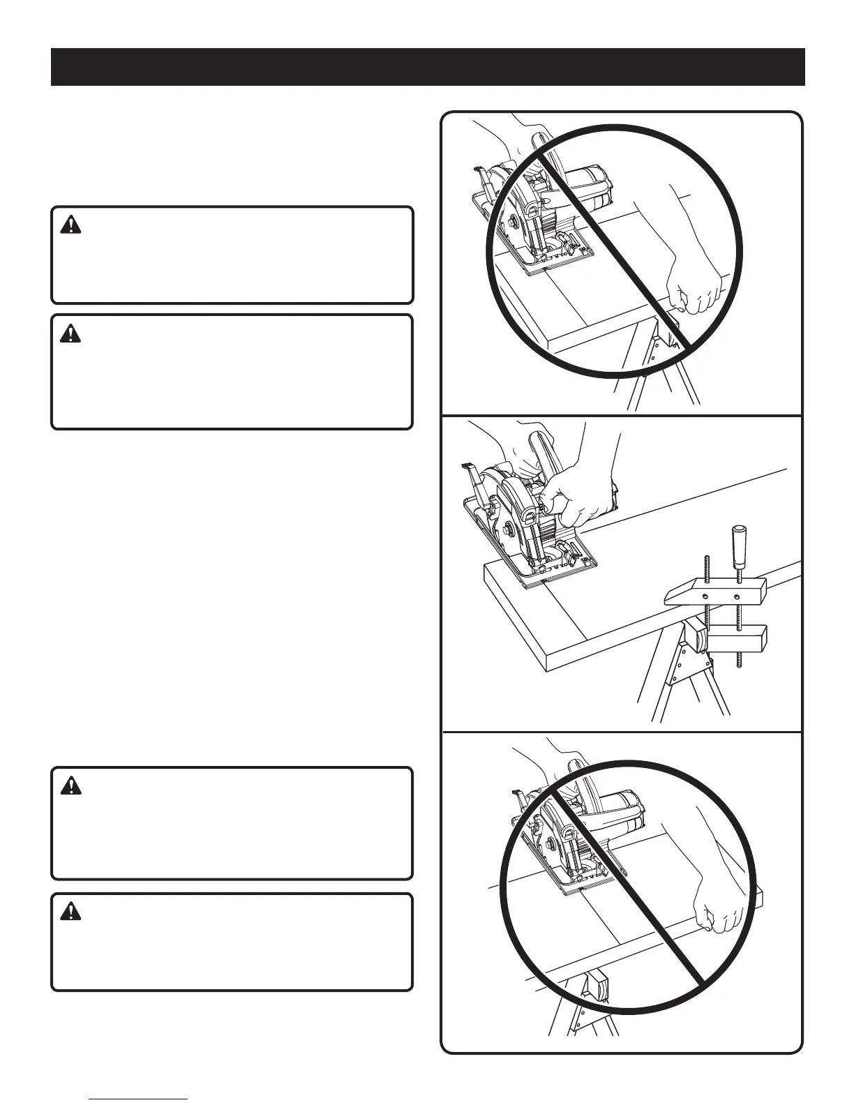 Avoid placing the saw on the part of the workpiece that