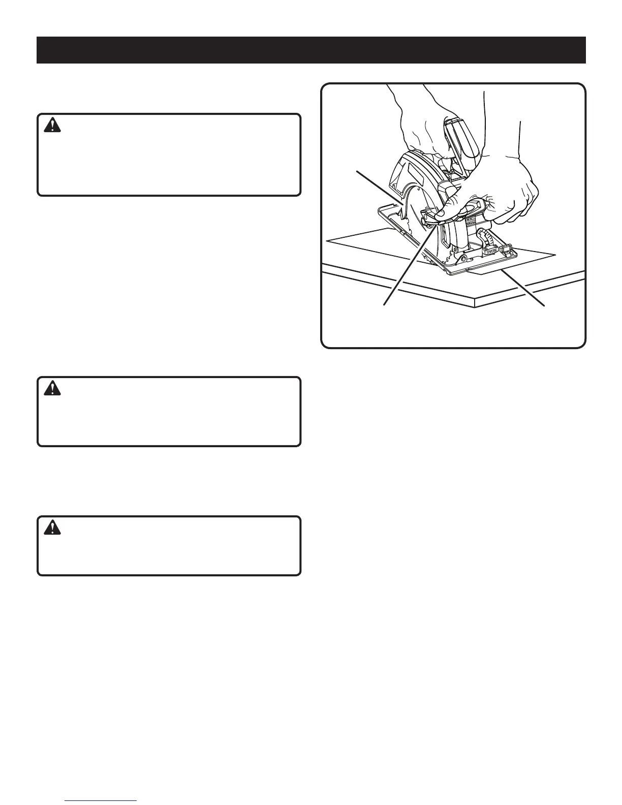 Always raise the lower blade guard with the handle