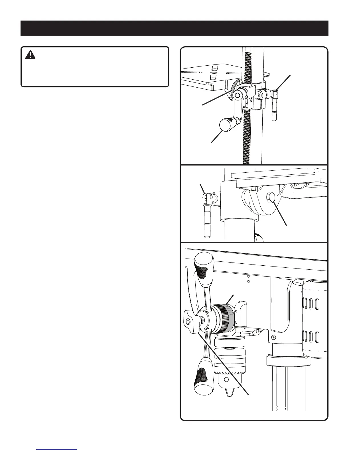 n Rotate the table adjustment handle clockwise to raise