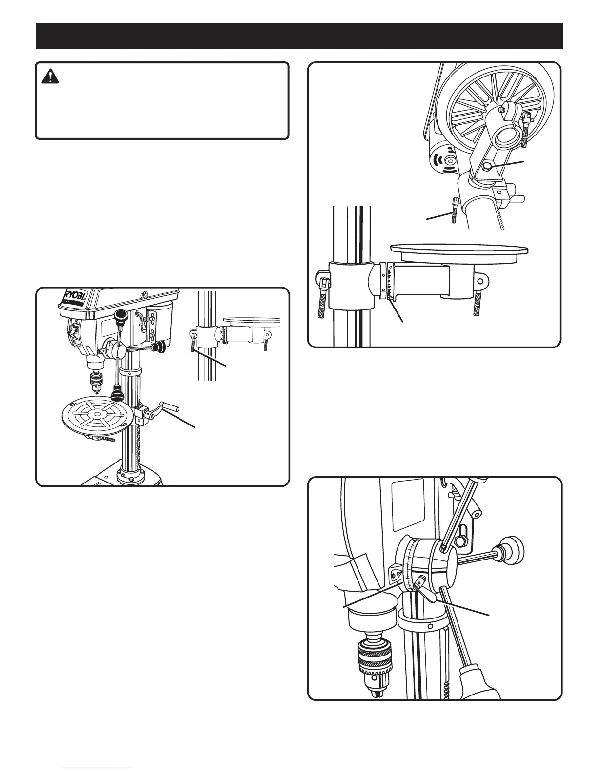 ■ Retighten depth stop securely. This will stop the spindle