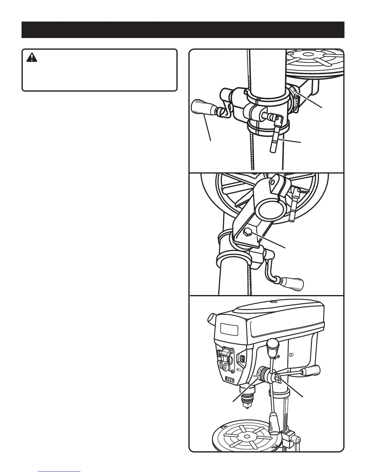 Rotate the table adjustment handle counterclockwise to