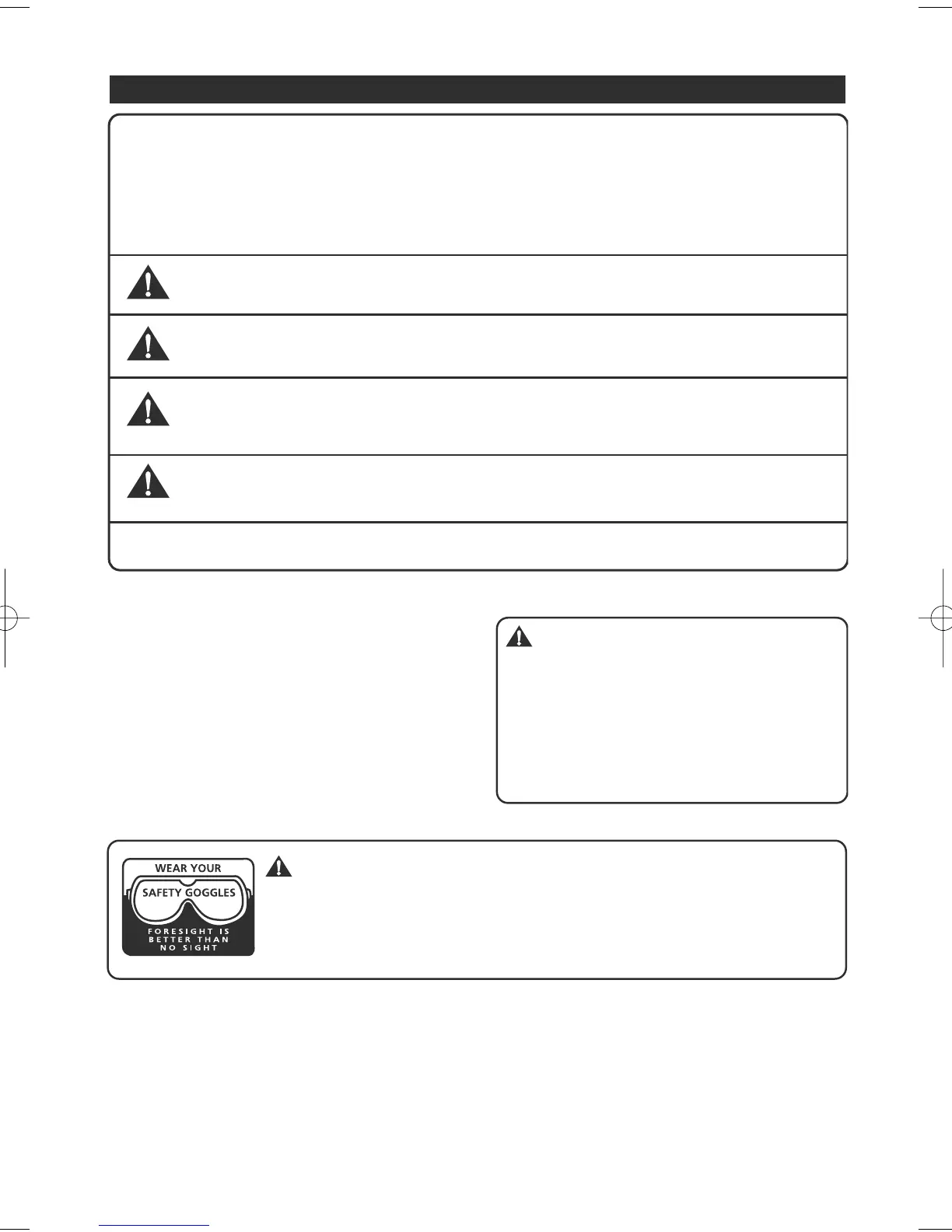 result in severe eye damage. Before beginning power tool operation,always wear safety goggles