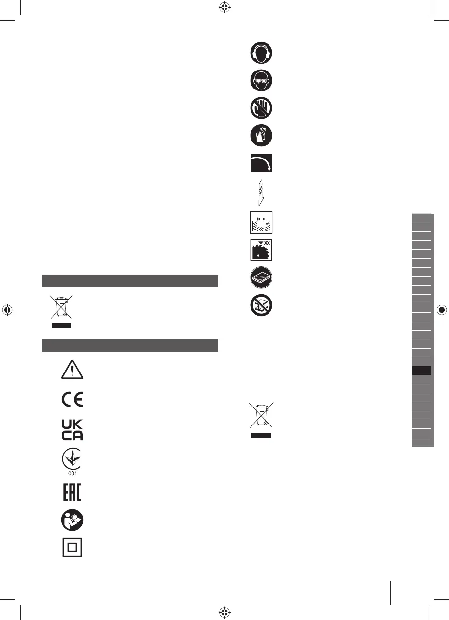 Rankas laikykite toliau nuo pjovimo