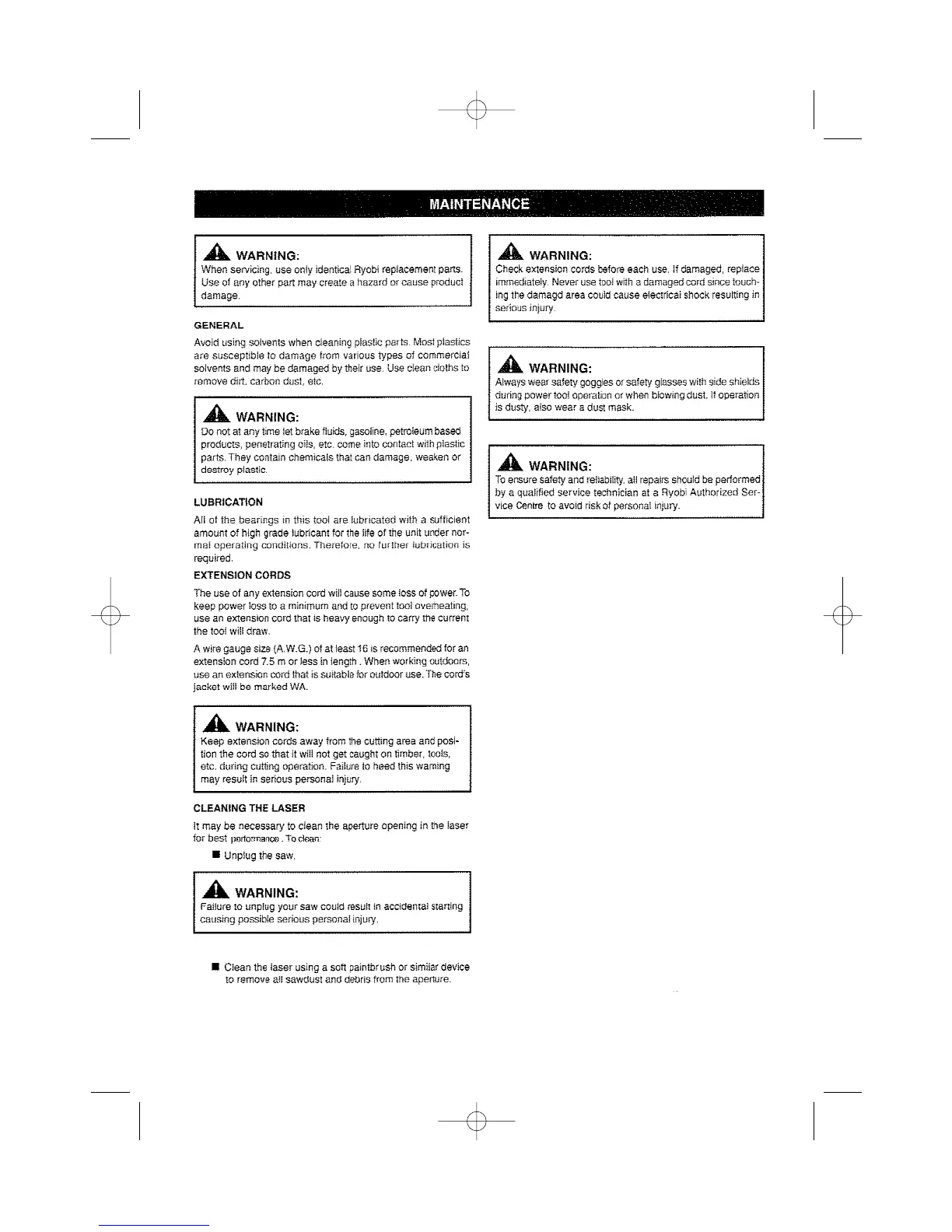 Ryobi EMS2305SCL - Maintenance and Care; General Maintenance Precautions