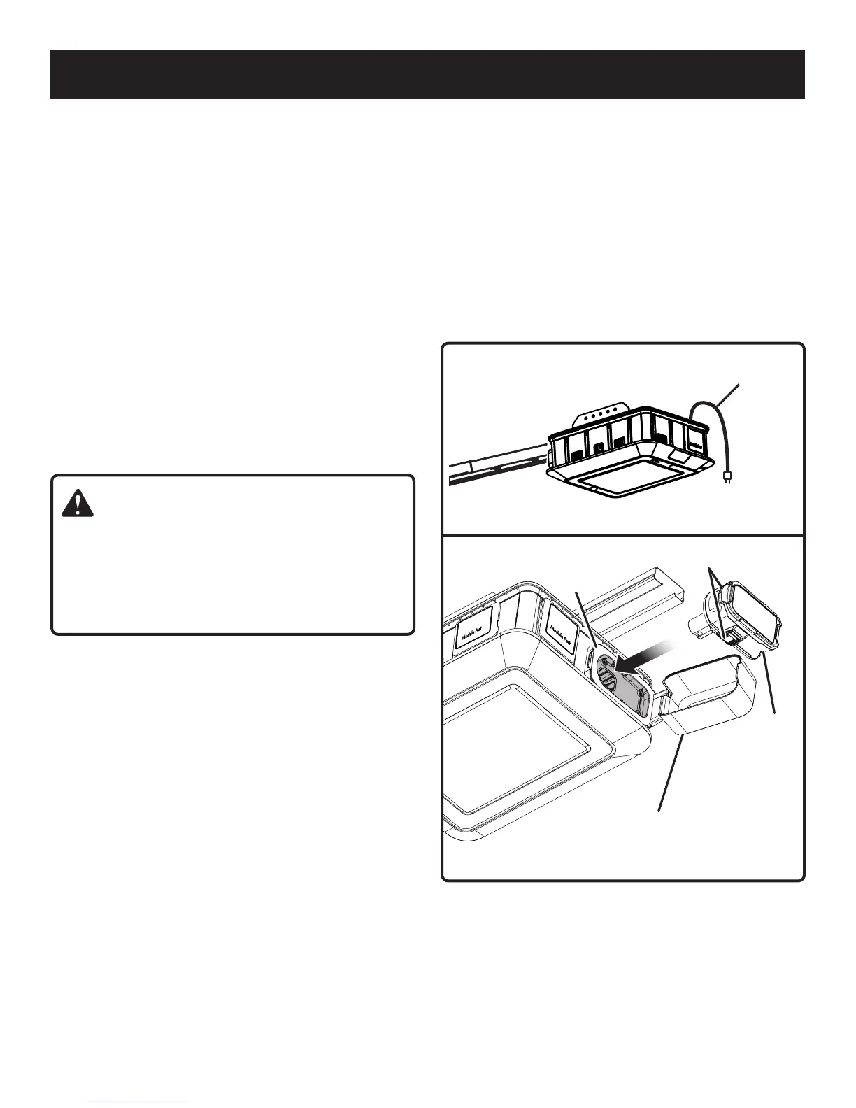 Install battery pack into the garage door opener as