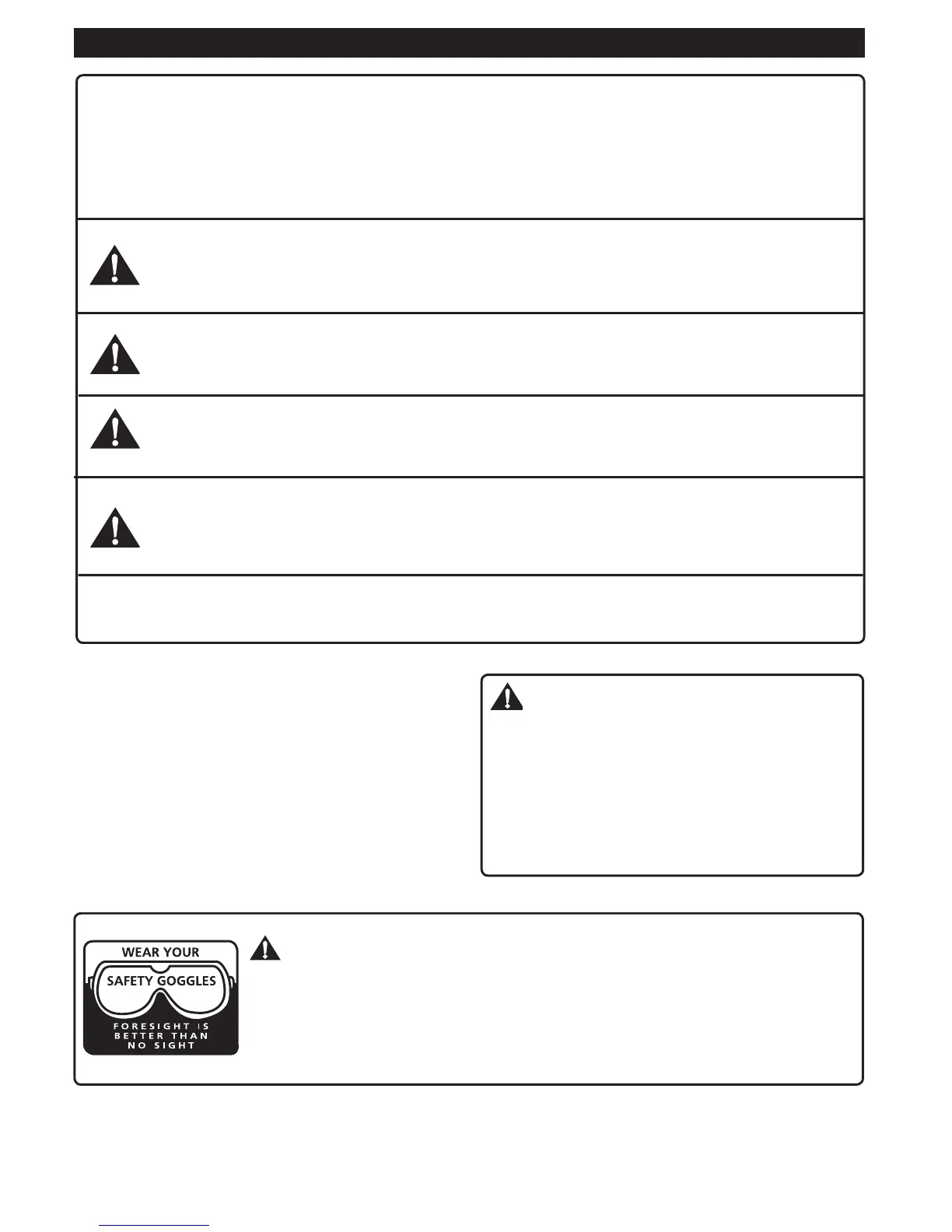 The operation of any tool can result in foreign objects being thrown into your eyes, which