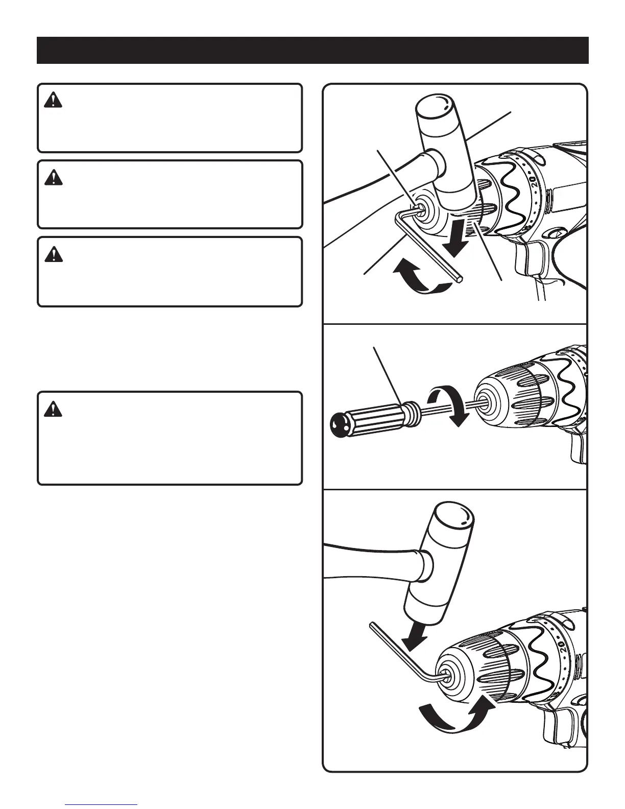 n Insert a 5/16 in. or larger hex key into the chuck of the