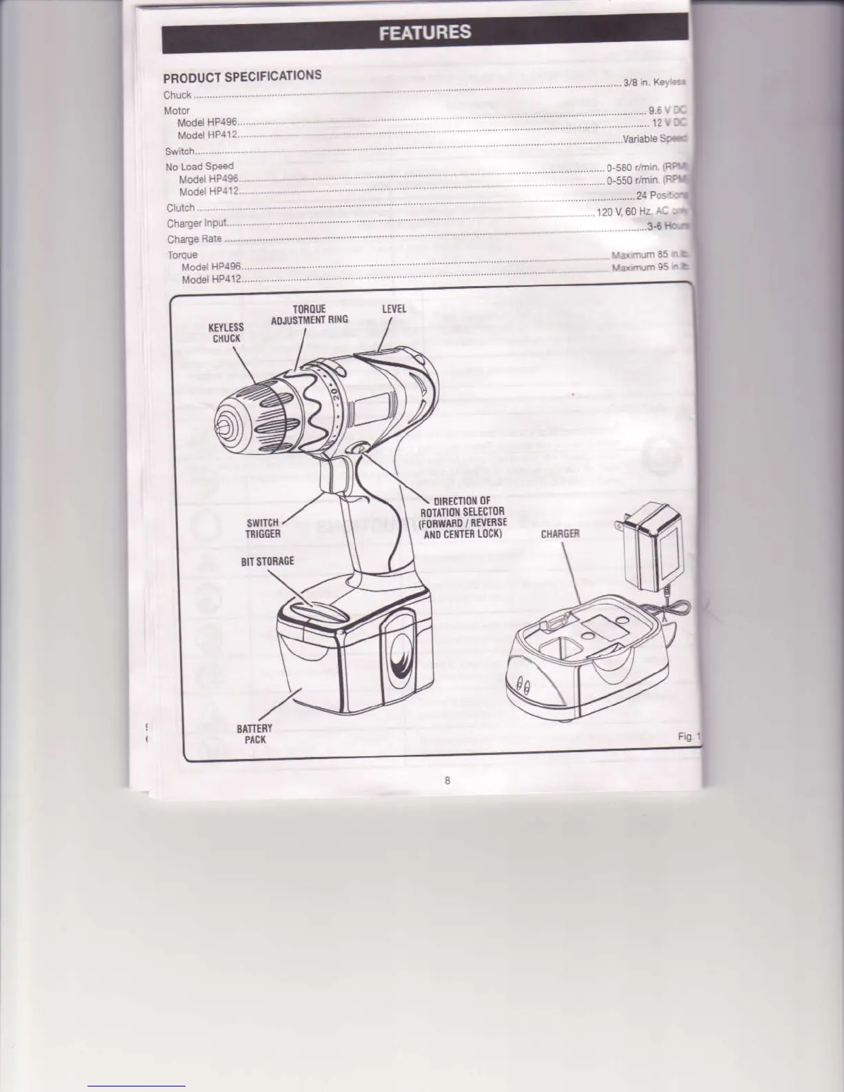 Ryobi HP496 - Tool Features and Specifications; Product Specifications