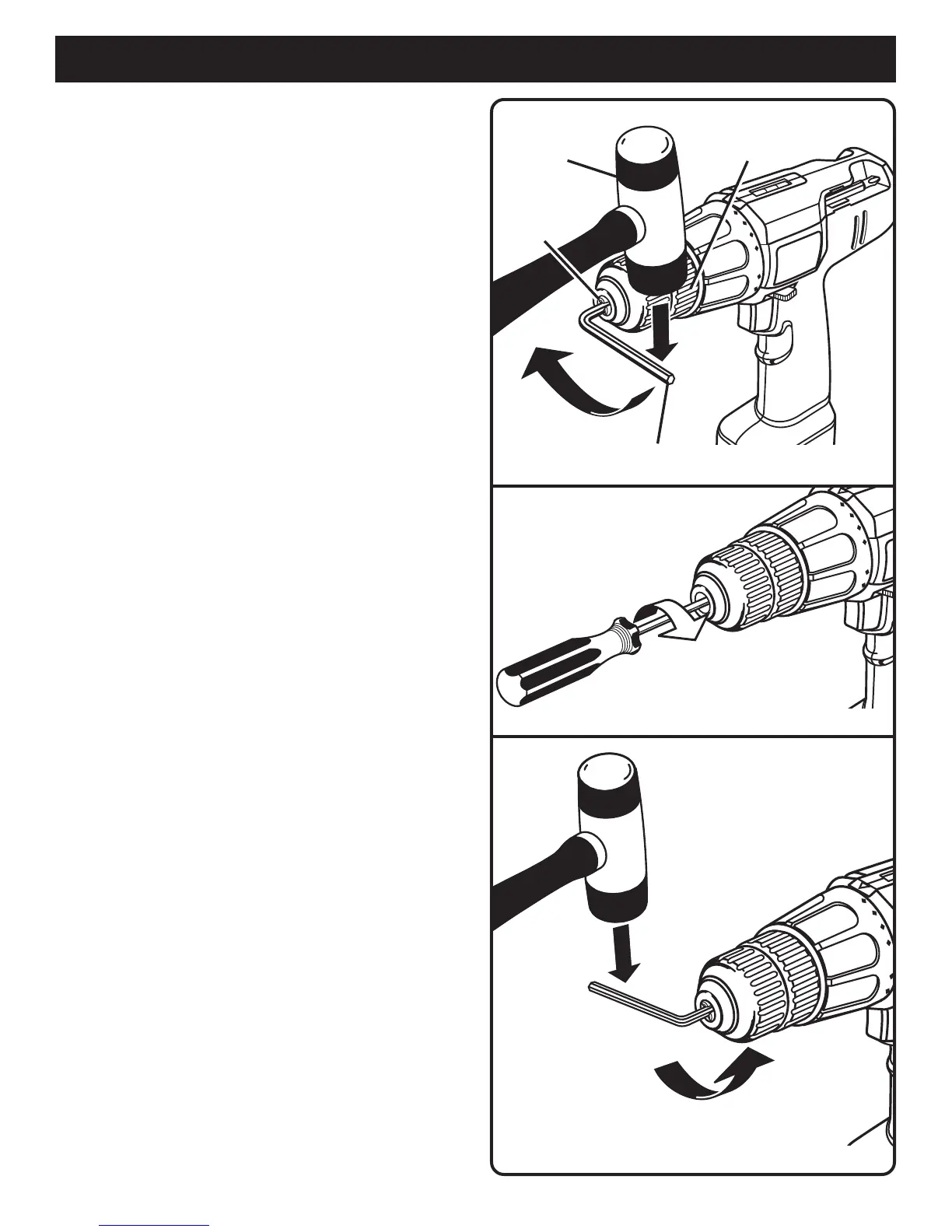 ■ Insert a 5/16 inch or larger hex key wrench into the chuck