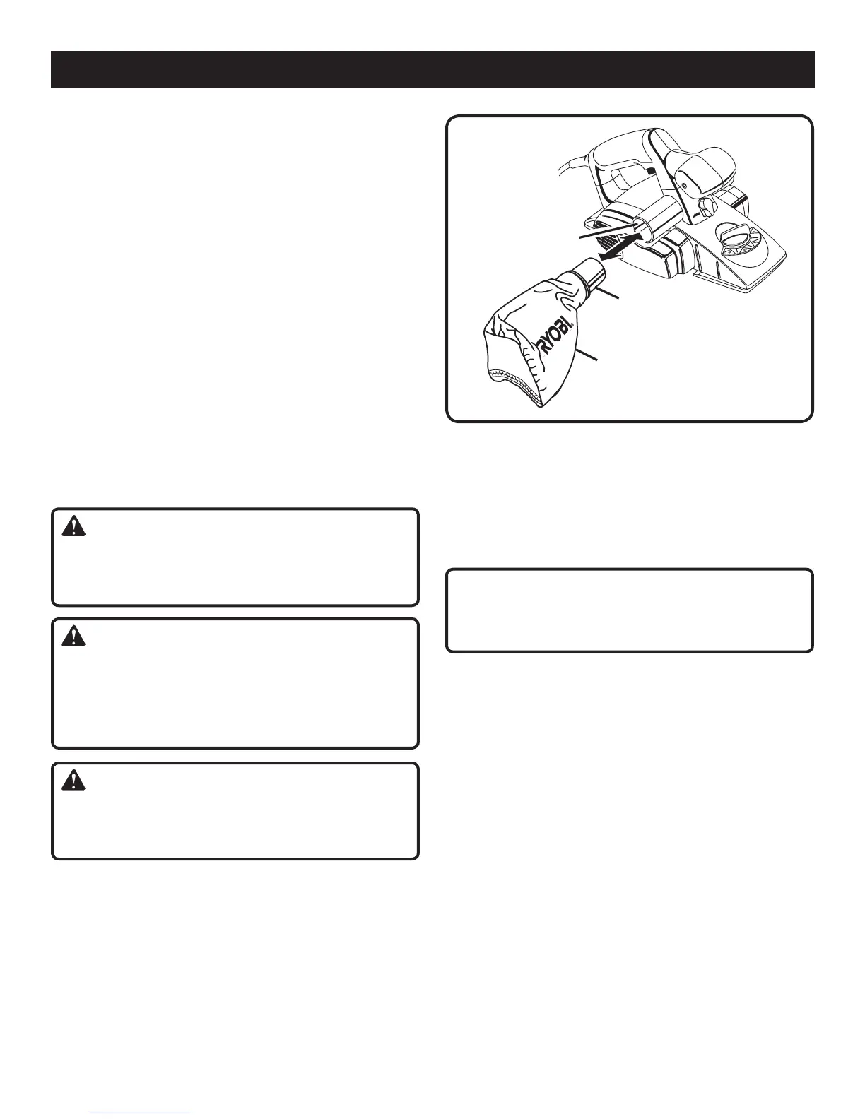 The dust bag fills quickly. Empty it often to prevent dam-