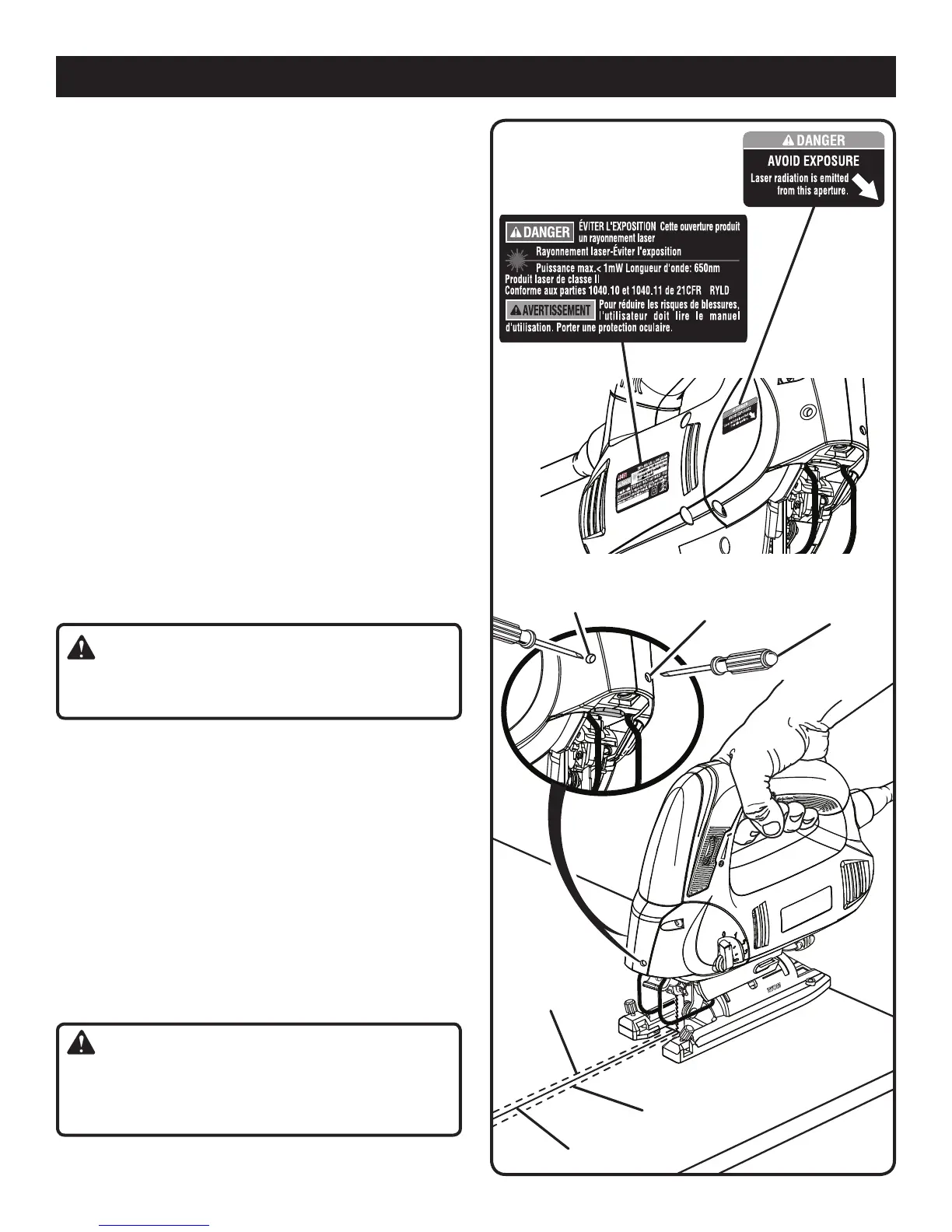 à égalité, débrancher la scie sauteuse et effectuer, au