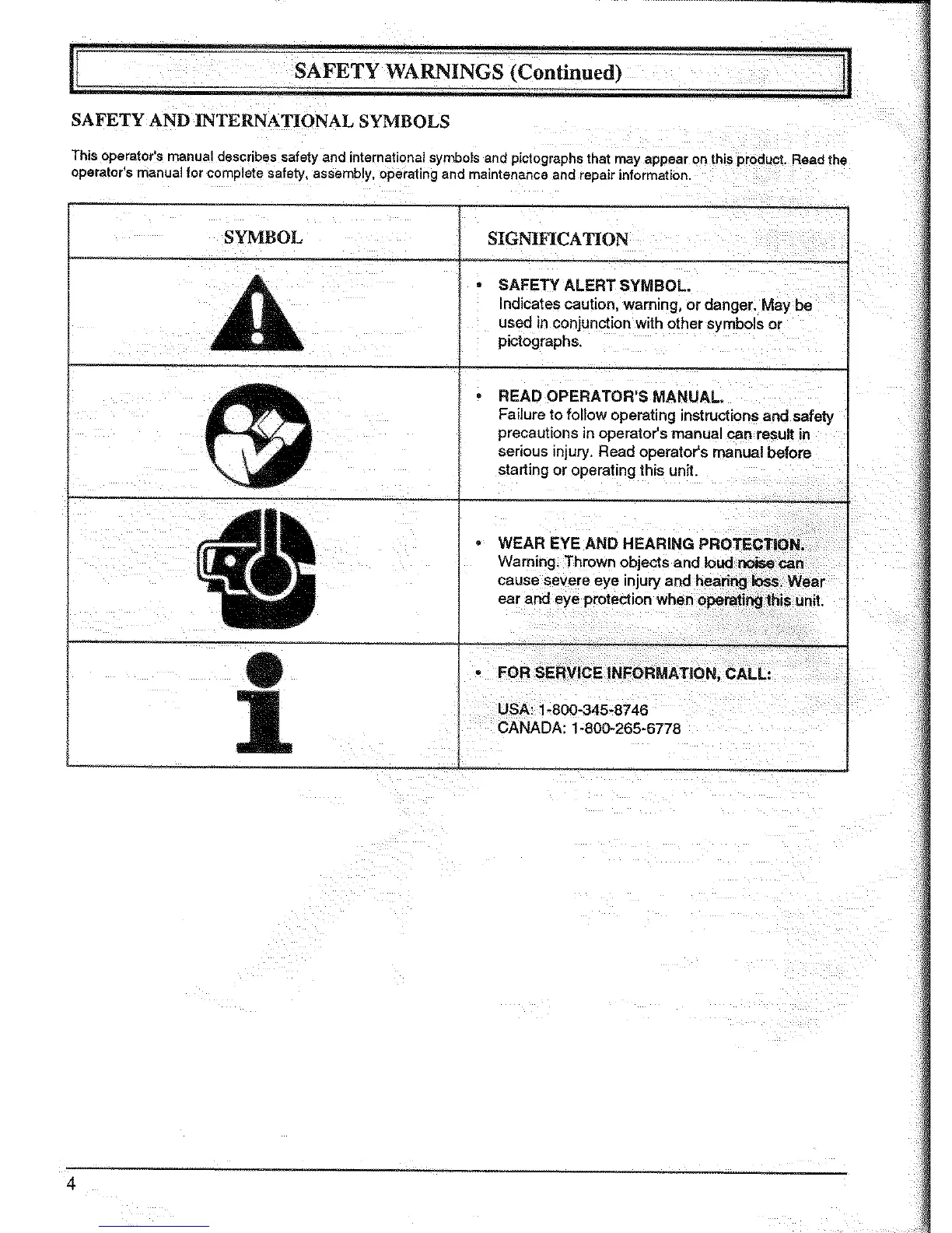 This operator's manual describes safety and international symbols and pictographs that may appear on this product. Read the