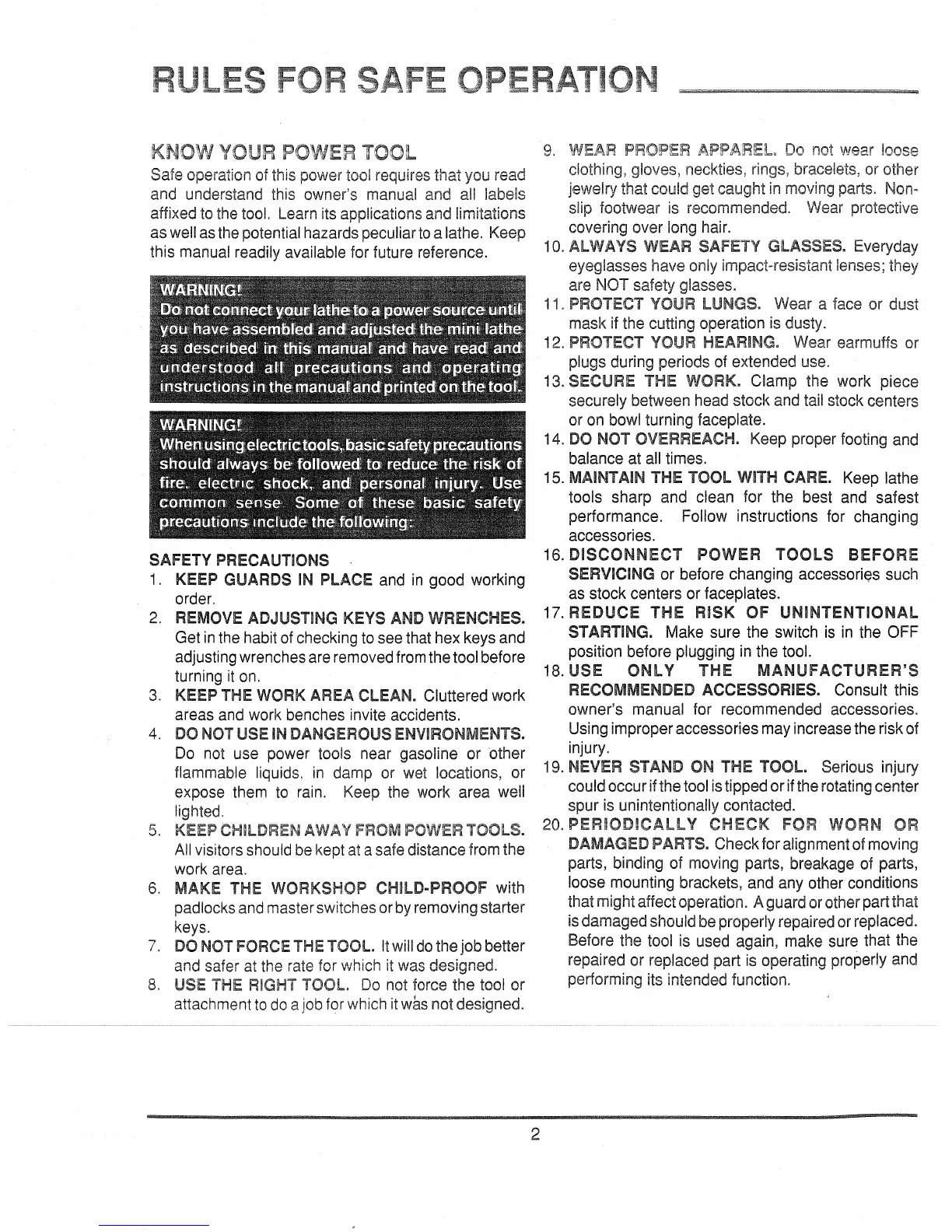 Ryobi ML618 - Rules for Safe Operation; Know Your Power Tool; Safety Precautions