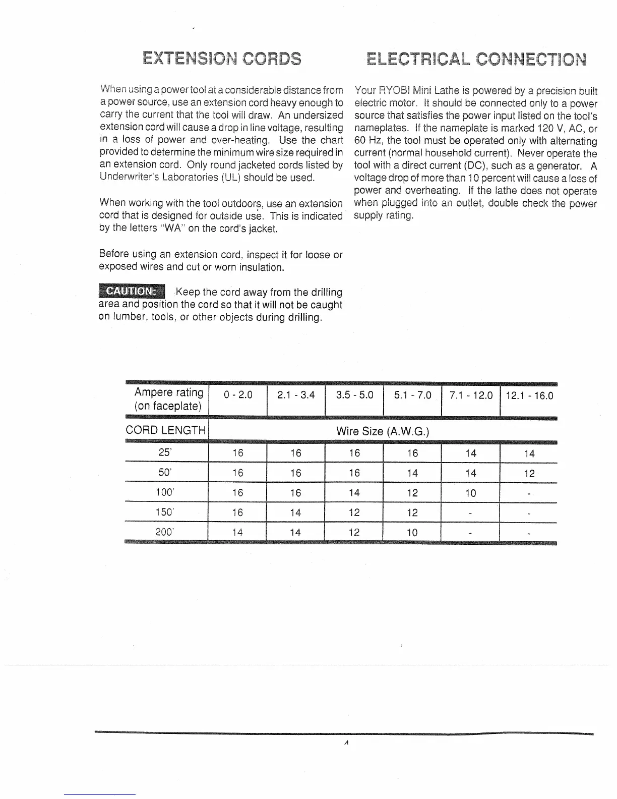 Ryobi ML618 - Extension Cords; Electrical Connection