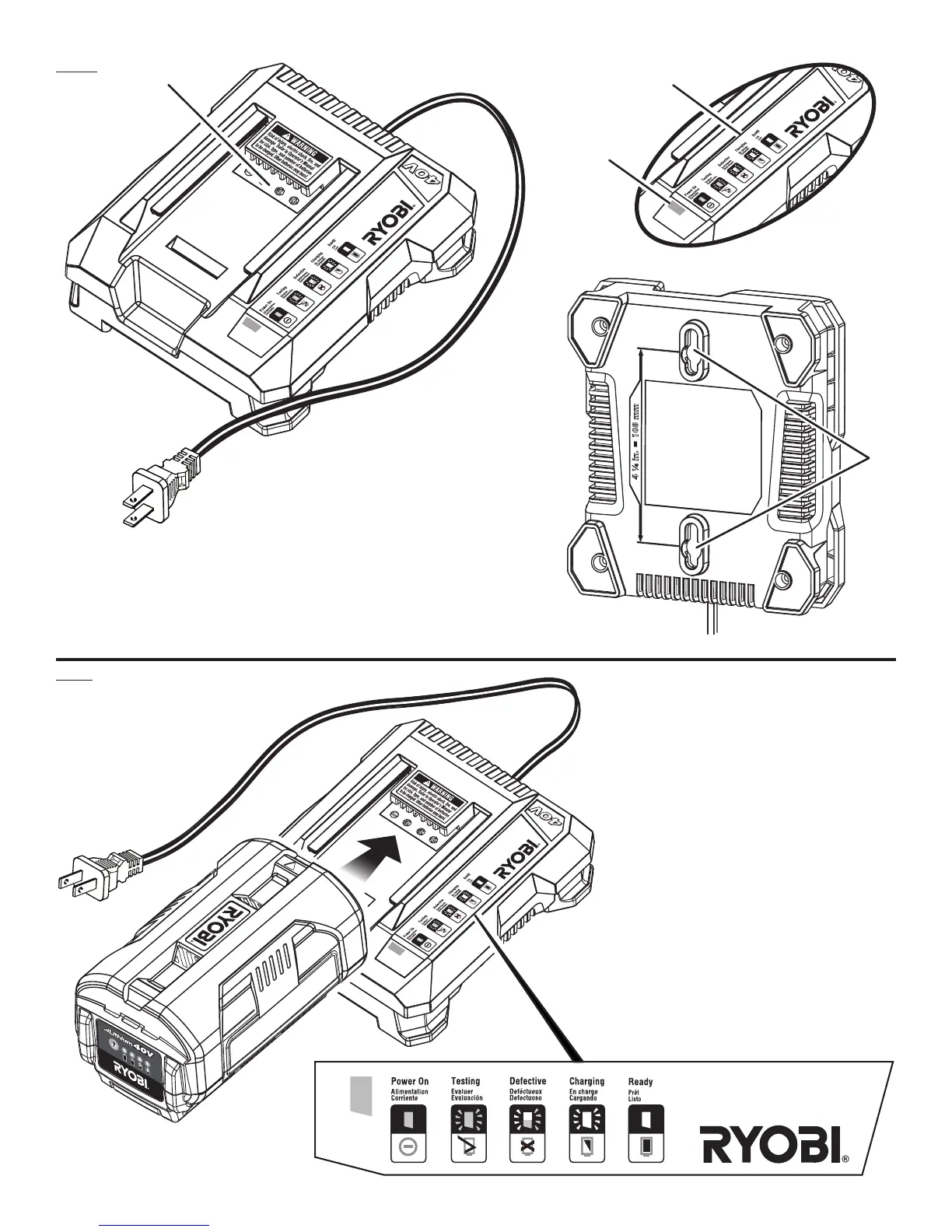 D - Charge indicator label (étiquette de l’indicateur de charge, etiqueta del indicador de carga)