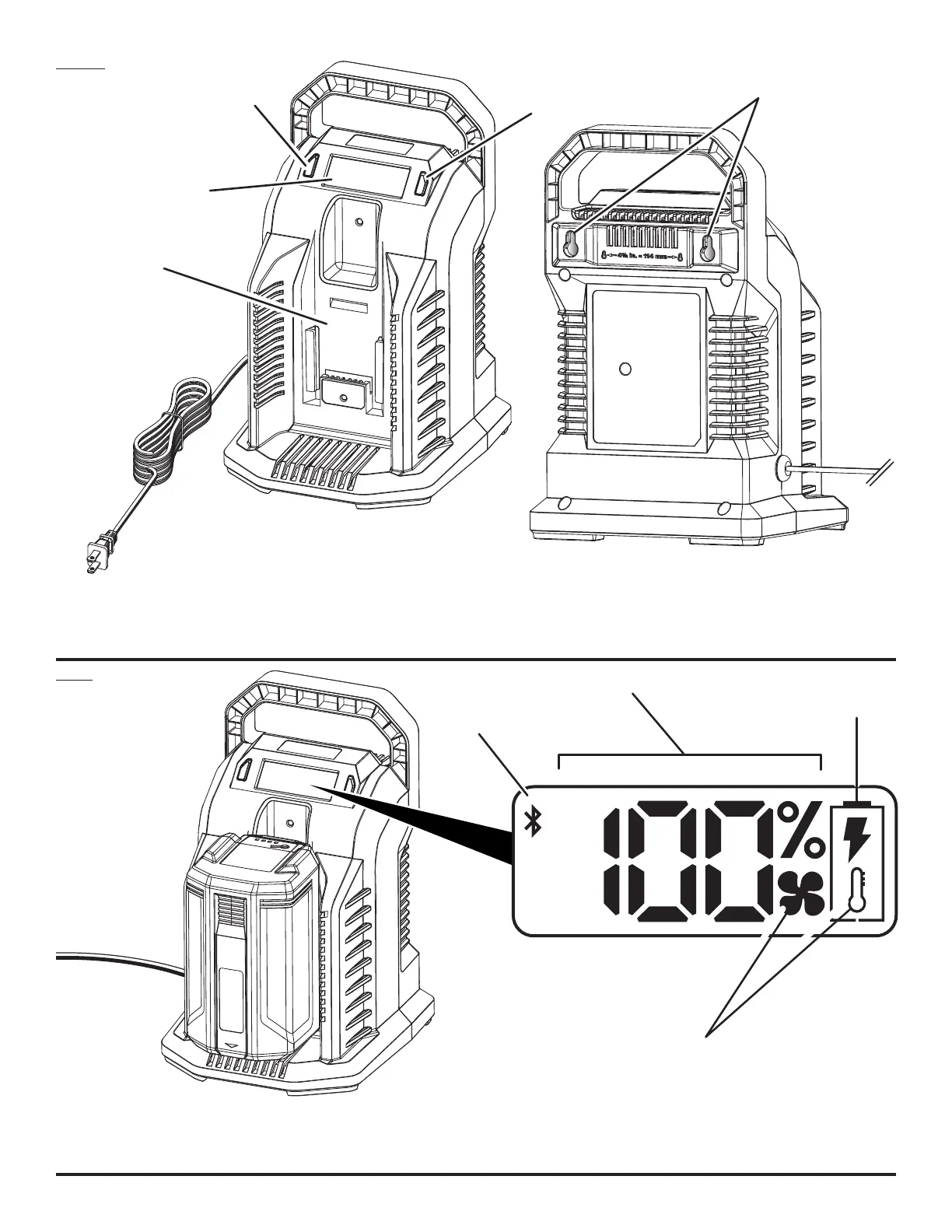 B - State of charging percent (pourcentage d’état de charge, estado del porcentaje de carga)