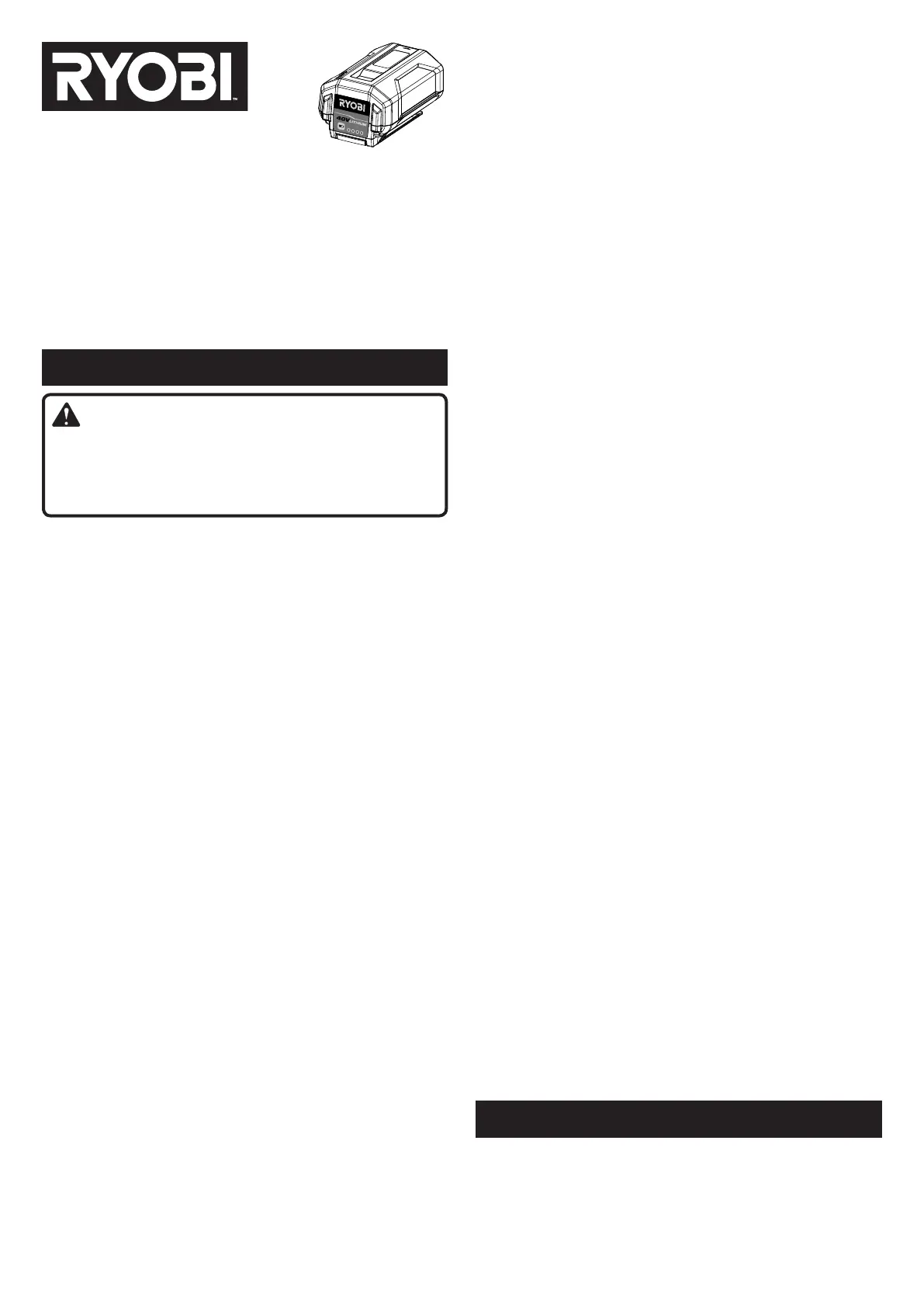 Charger seulement avec RYOBI 40 V les chargeurs