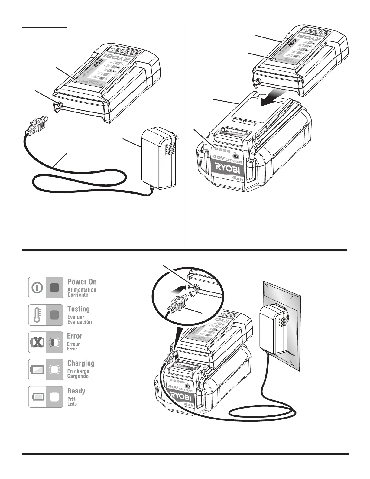 A - Battery charger (chargeur de piles, cargador de baterías)