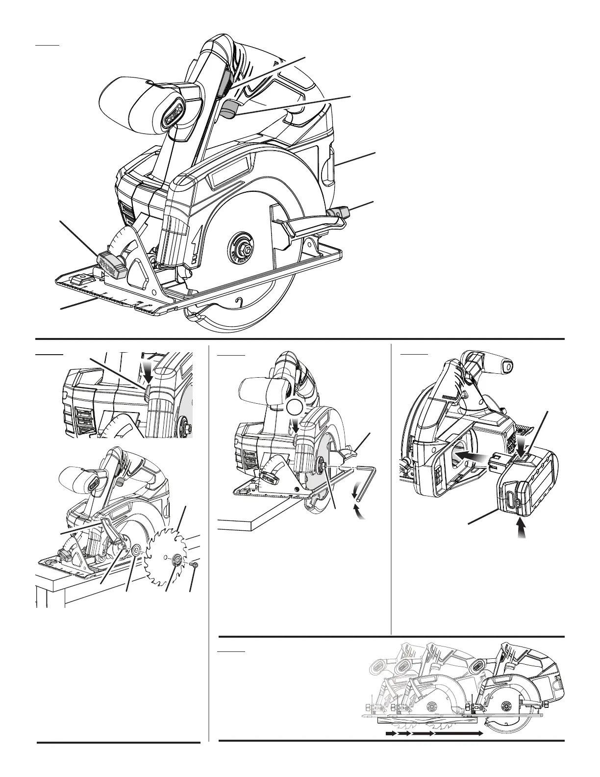 B - Lower blade guard handle (poignée de garde