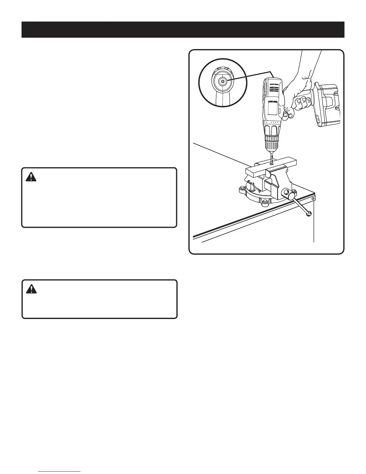 The material to be drilled should be secured in a vise or with