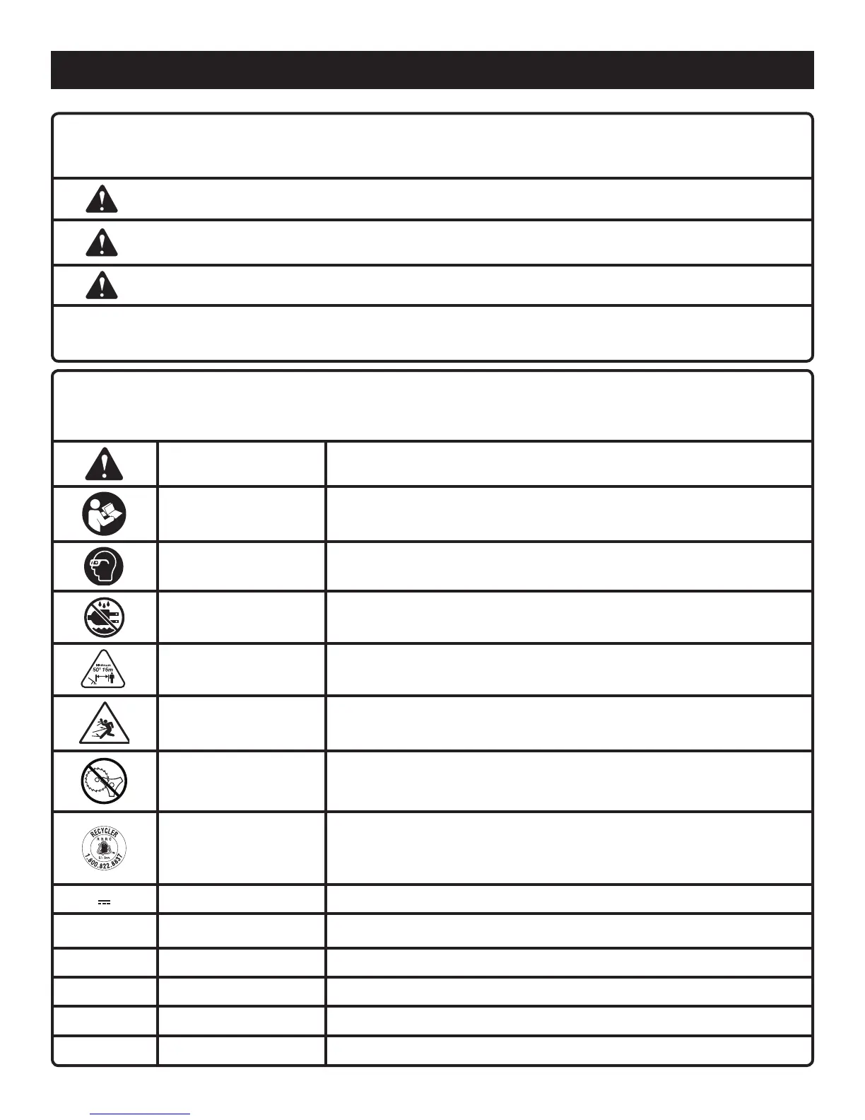 Ne pas utiliser de lame Ne jamais utiliser une lame quelconque sur un outil portant ce symbole.