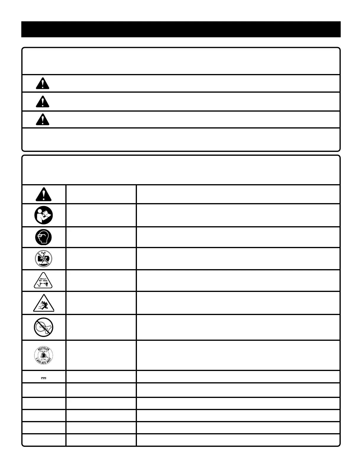 Ne pas utiliser de lame Ne jamais utiliser une lame quelconque sur un outil portant ce symbole.