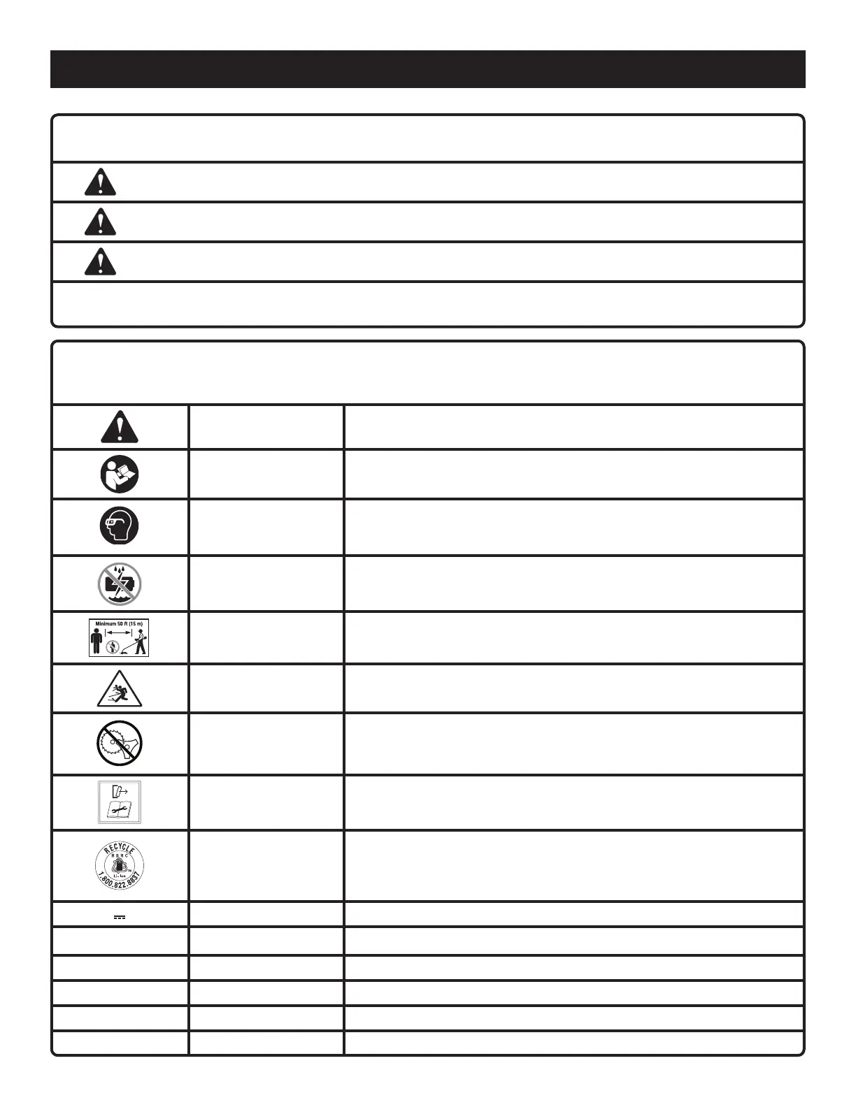 No Blade Do not install or use any type of blade on a product displaying this symbol.