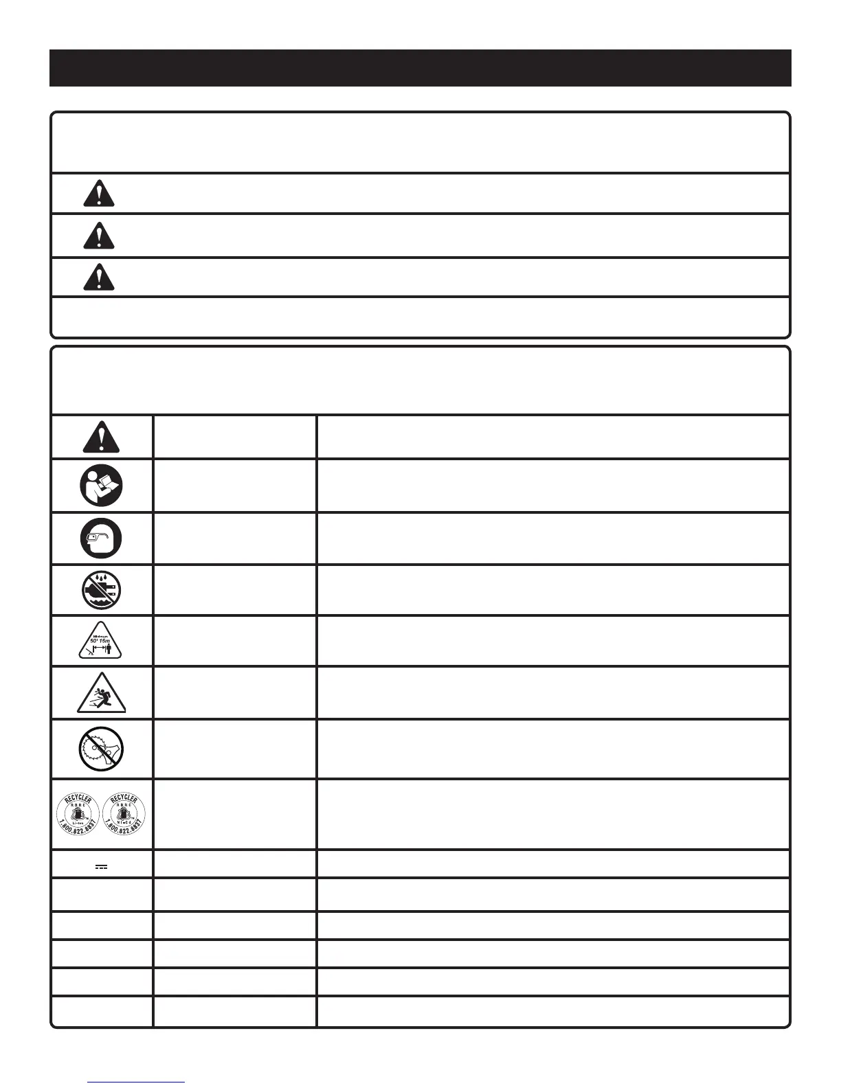 Ne jamais utiliser une lame quelconque sur un outil portant ce symbole.