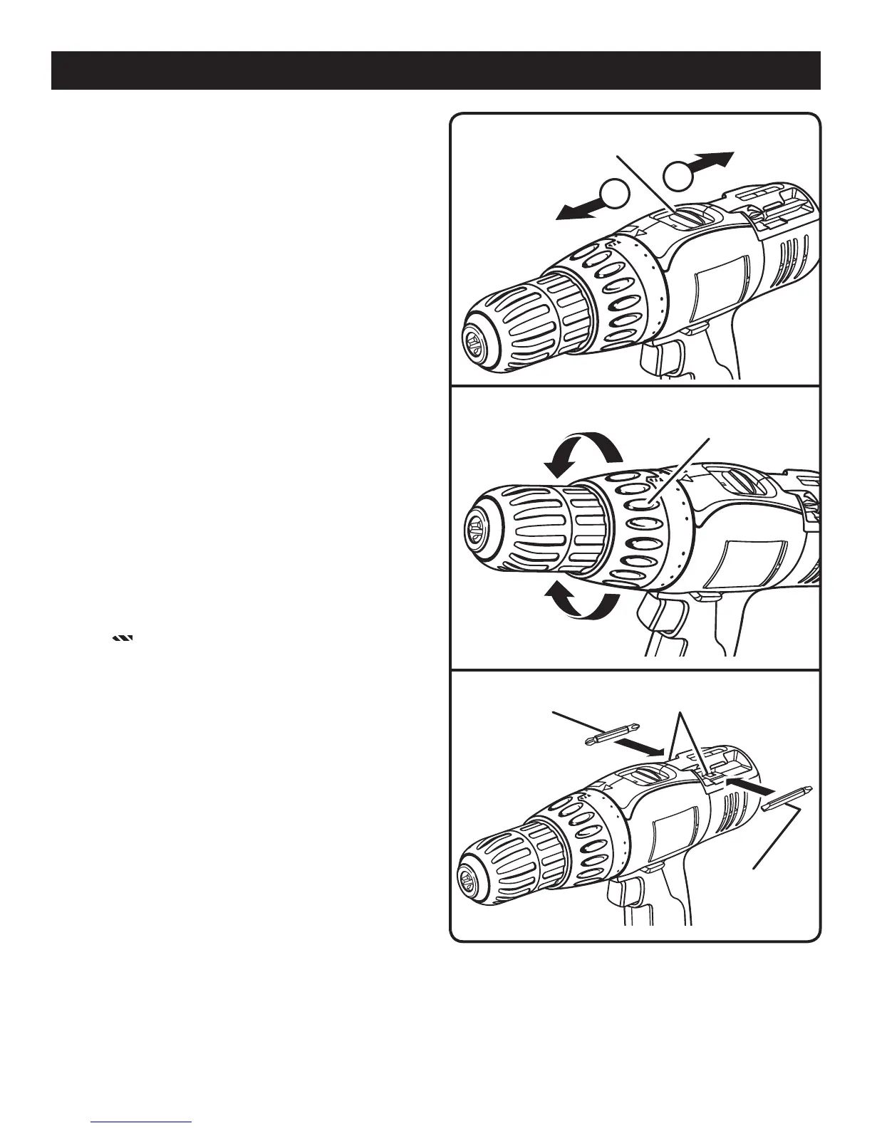 top of the drill to select either LO (1) or HI (2) speed. When