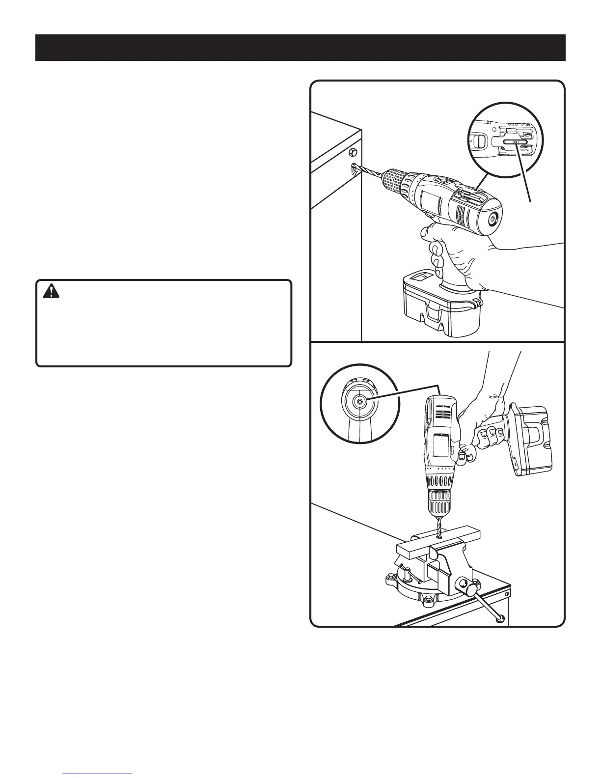 n Secure the material to be drilled in a vise or with clamps