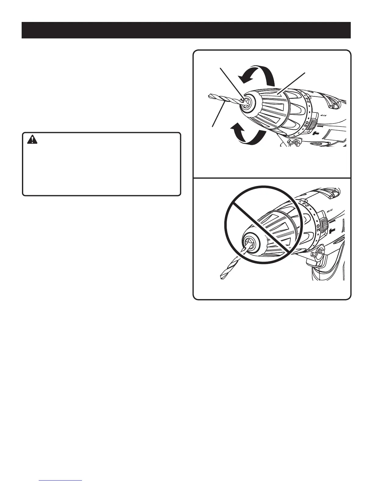 n Tighten the chuck jaws on the drill bit.