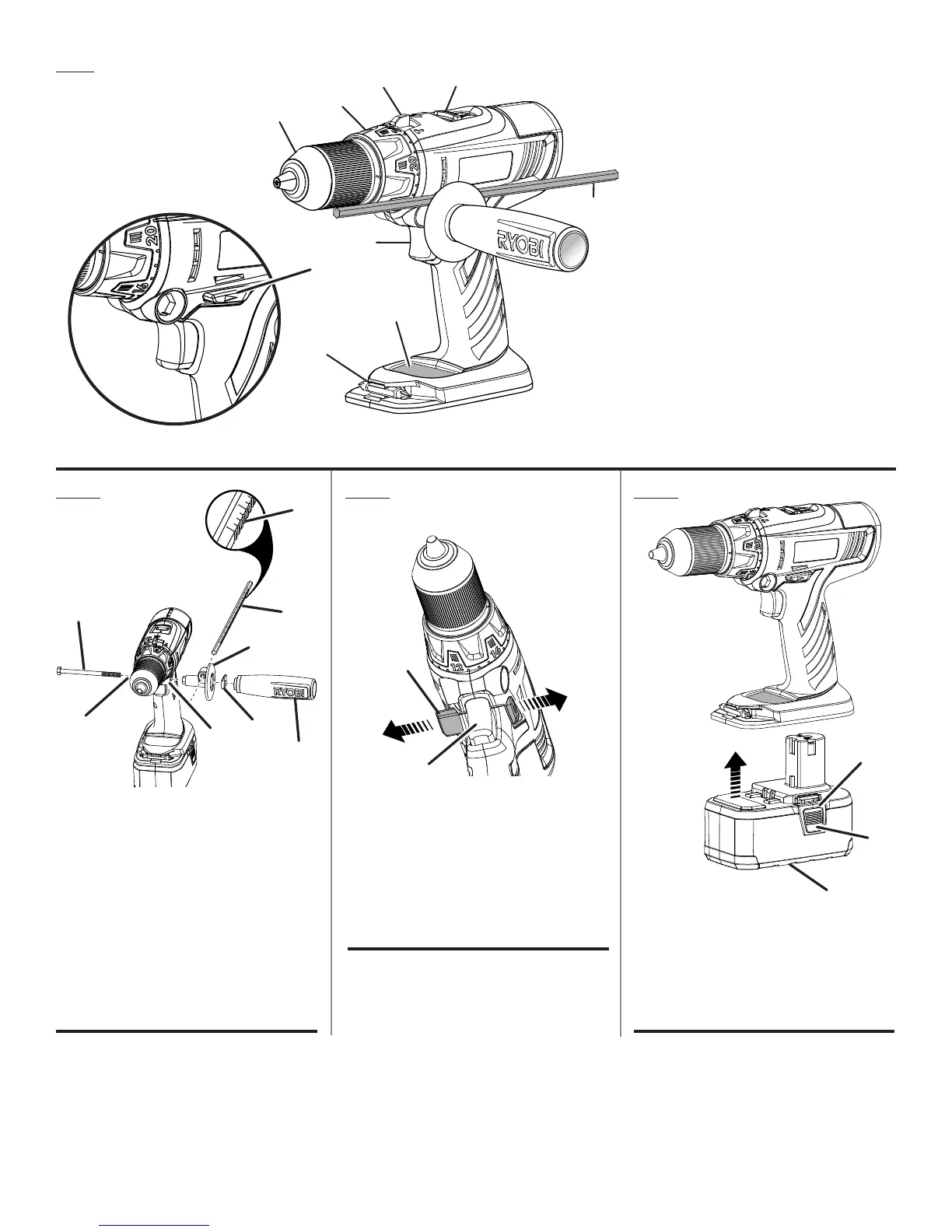 A - Battery pack (bloc-pile, paquete de batería)