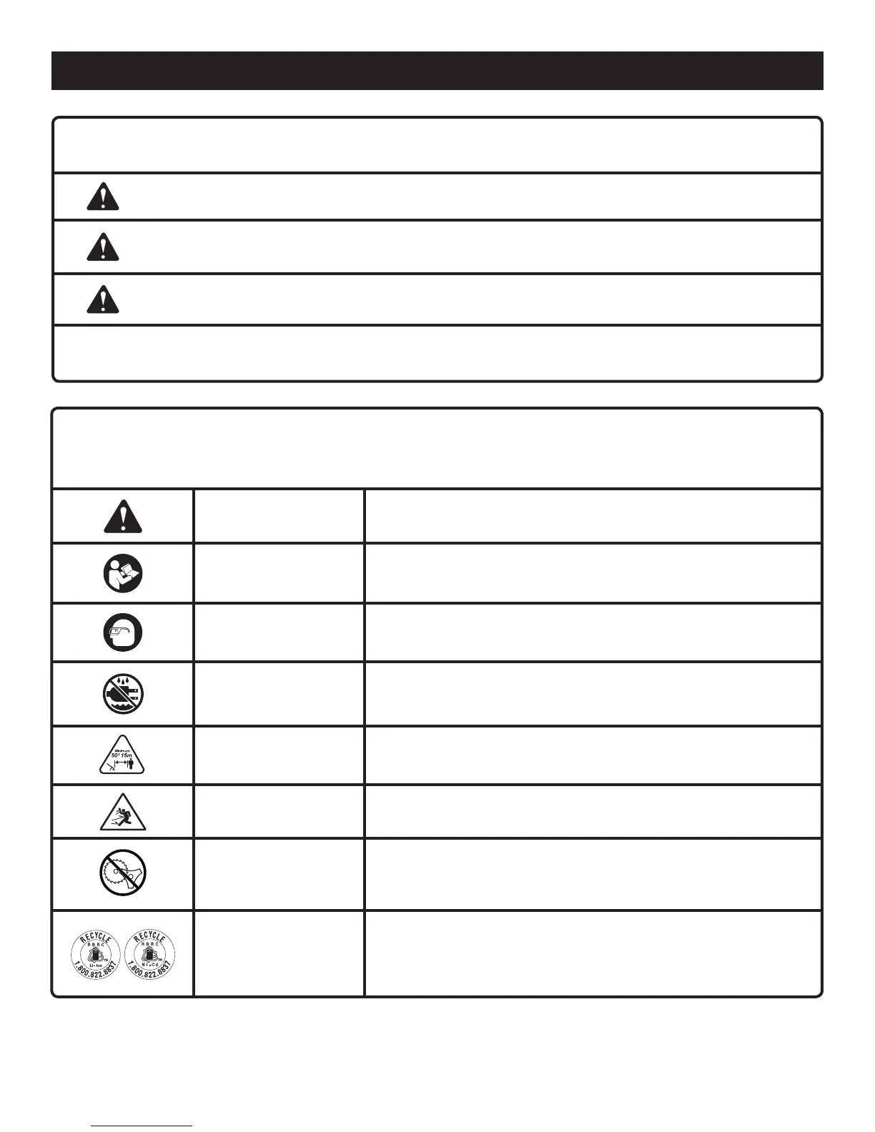 To reduce the risk of injury, user must read and understand operator’s