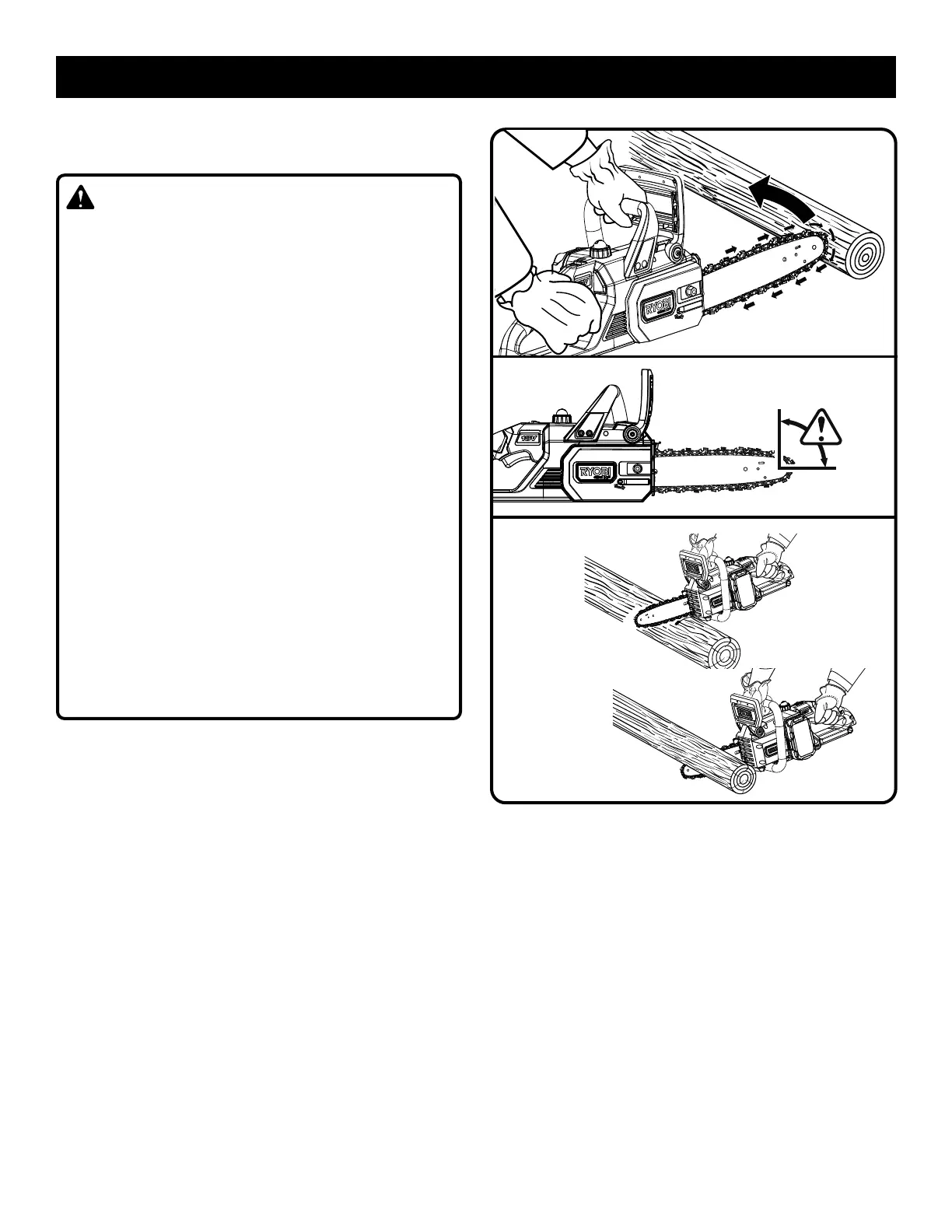 el operador. Si la cadena de la sierra se pellizca