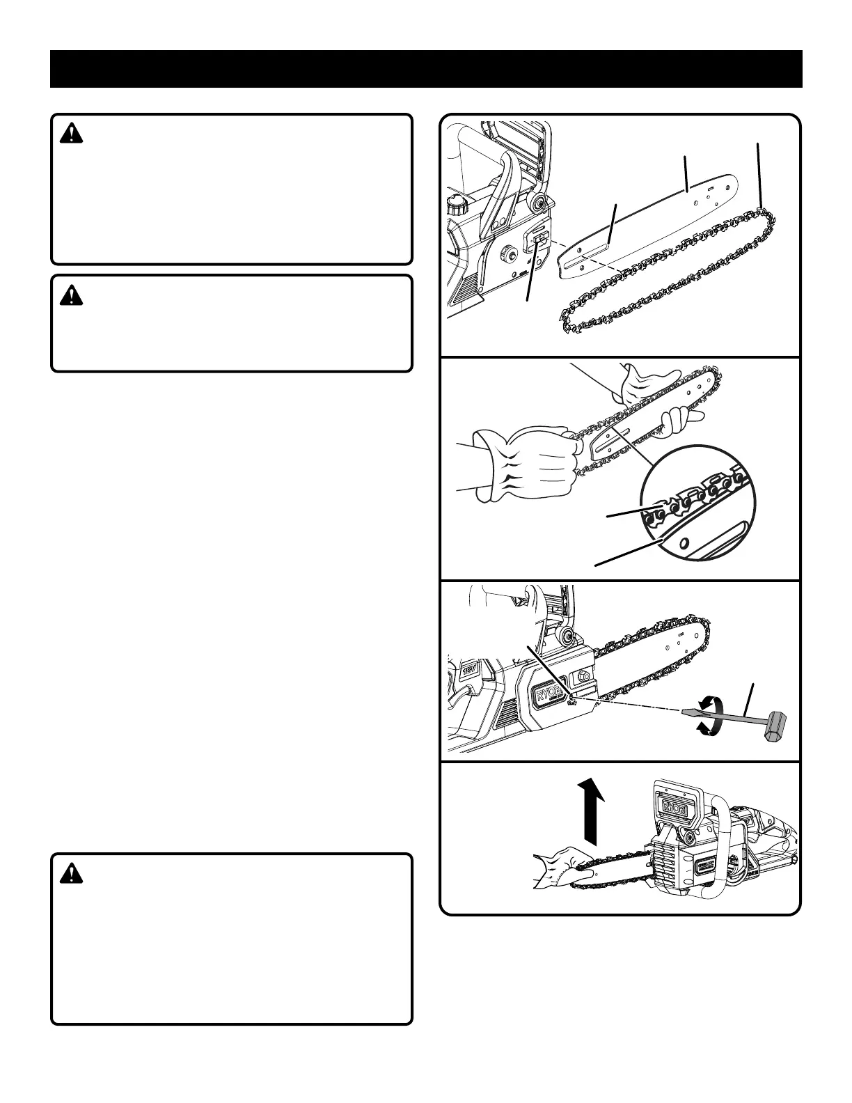 en la ranura de la barra. Acomode la cadena de tal