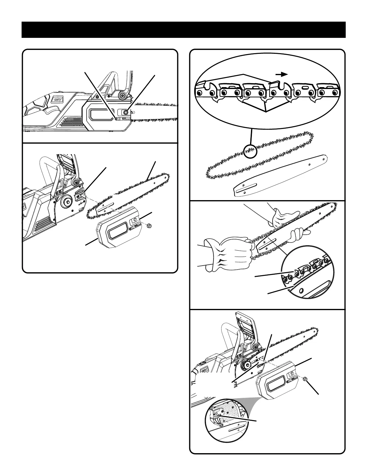 Extienda la nueva cadena de la sierra en un círculo y