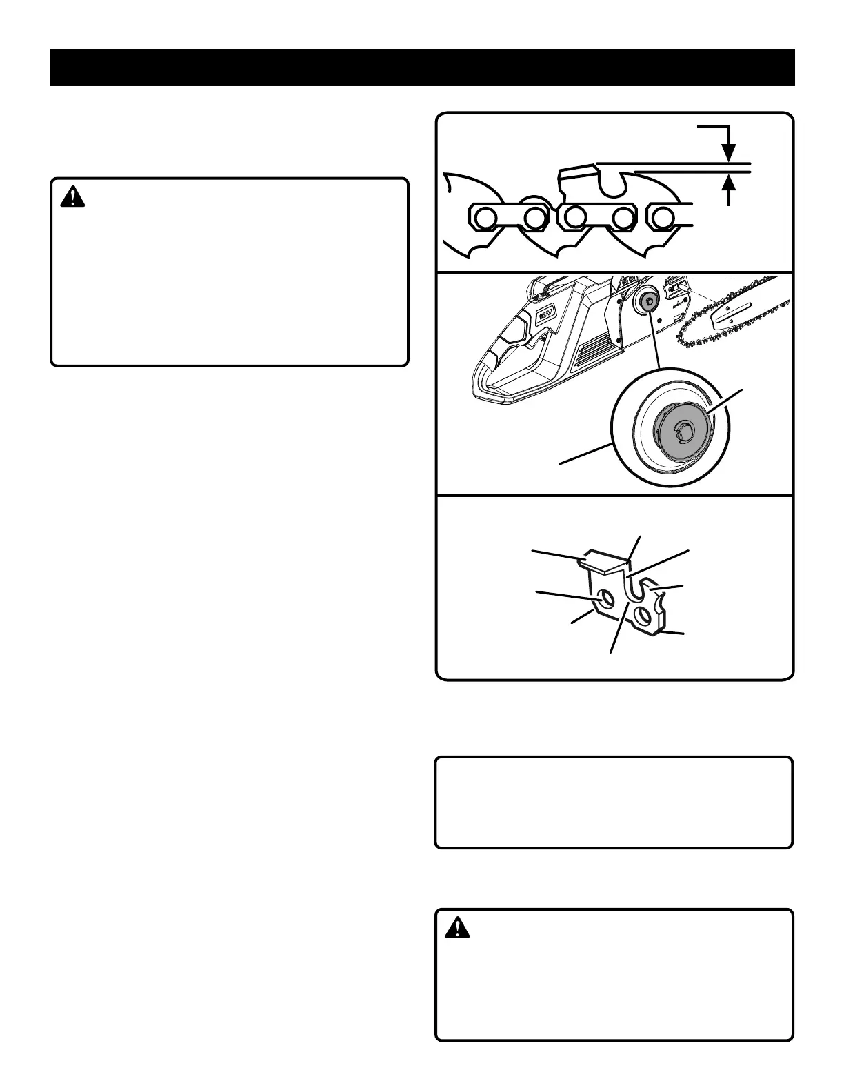 “tensión en frío” de la cadena, antes de usar la sierra.